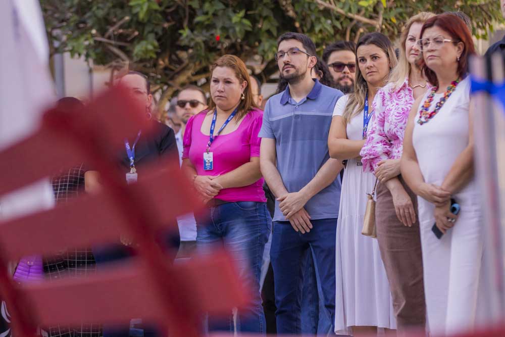 O primeiro passo é uma ação, organizada pela Pró-reitoria de Gestão de Pessoas (Progesp), para provocar reflexão em quem passa pelos espaços da Universidade. Cinco bancos foram pintados de vermelho, em sintonia com campanhas do Ministério das Mulheres do Governo Federal. “O Banco vermelho é um símbolo internacional de combate ao feminicídio e à violência contra a mulher, representando o sangue derramado pelas vítimas. Com esta ação, buscamos conscientizar, transformar o ‘luto em luta’ e incentivar denúncias”, defende a pró-reitora de Gestão de Pessoas, professora Eliane Rauski. Na tarde de sexta-feira (6), a inauguração simbólica de um dos bancos no pátio do Bloco B foi realizada com a presença de autoridades da Universidade e da sociedade. No mesmo ato, foi lançada a Ouvidoria de Gênero – um canal de escuta e acolhimento para vítimas de violência.