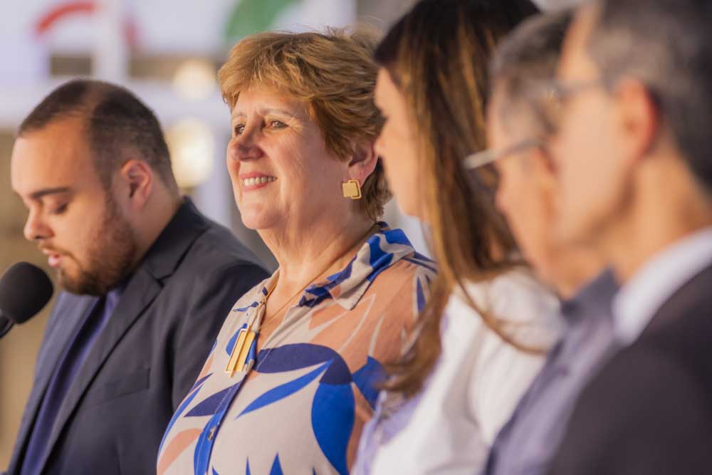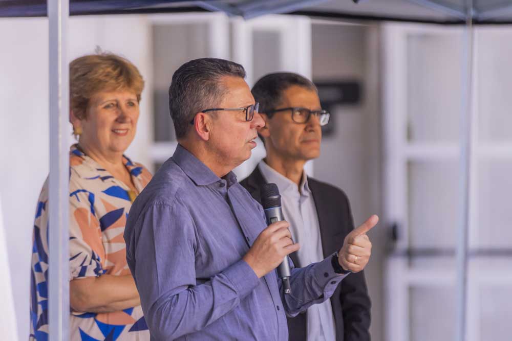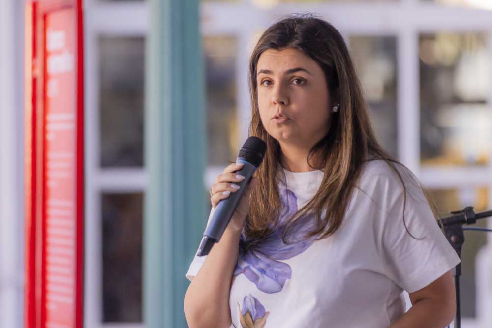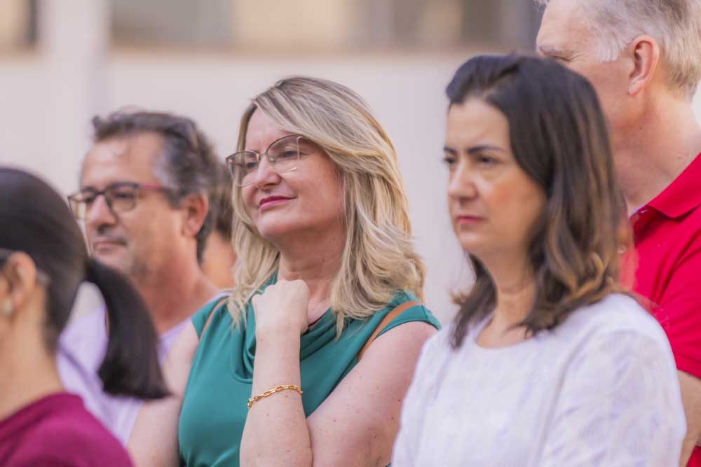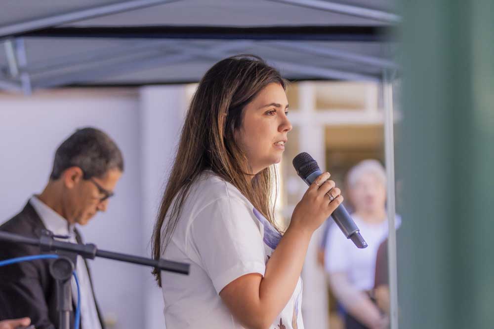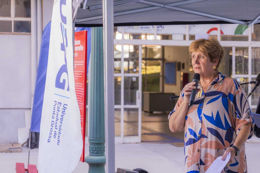 O evento contou com a presença da Secretária da Família e Desenvolvimento Social, Camila Calisto Sanches, que elogiou a iniciativa. “O município de Ponta Grossa vê com muita importância esse momento. A UEPG faz parte da Rede de Enfrentamento, com seus diversos órgãos, como o Hospital Universitário. Então, que essa intervenção nos campi traga conscientização principalmente para os homens. Quando eles sentarem nos bancos, vão entender o impacto da violência na vida das mulheres”, explica Camila.