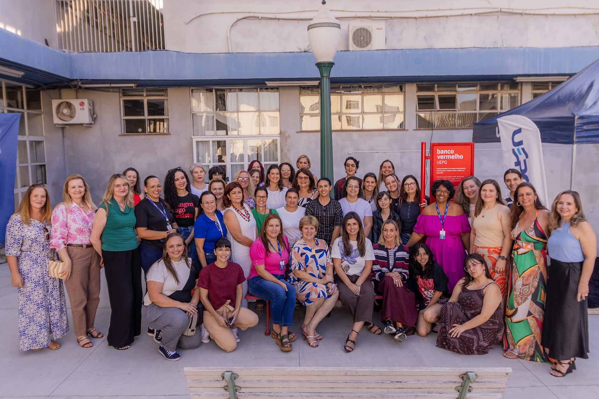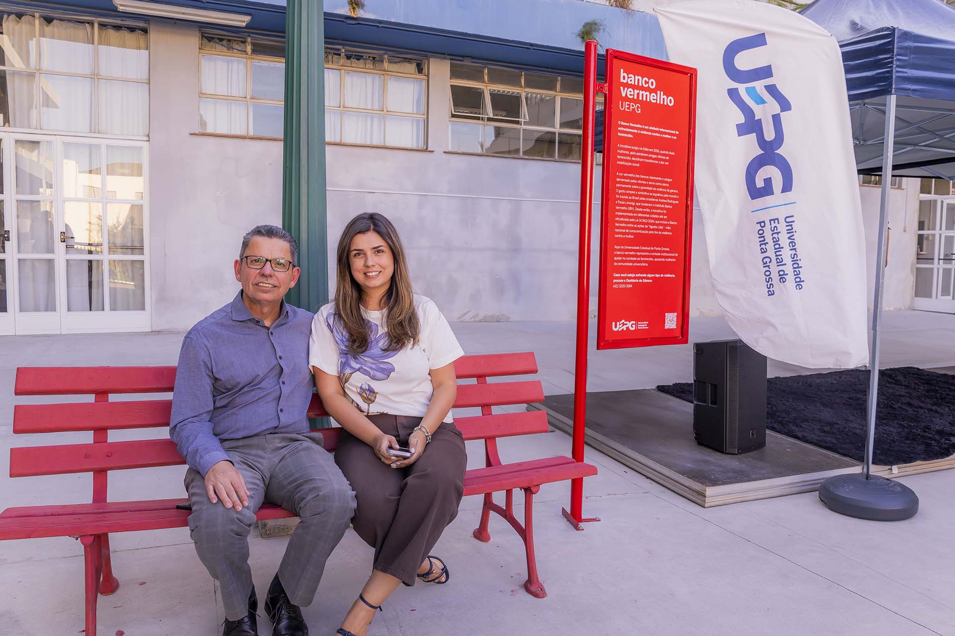 A iniciativa dos bancos vermelhos surgiu na Itália em 2016, quando duas mulheres, após perderem amigas vítimas de feminicídio, decidiram transformar a dor em mobilização social. A cor vermelha dos bancos representa o sangue derramado pelas vítimas e serve como alerta permanente sobre a gravidade da violência de gênero. O gesto se espalhou pelo mundo e foi trazido ao Brasil pelas brasileiras Andrea Rodrigues e Paula Limongi, que fundaram o Instituto Banco Vermelho (IBV). Desde então, a iniciativa foi implementada em diferentes cidades até ser oficializada pela Lei 14.942/2024, que incluiu o Banco Vermelho entre as ações do “Agosto Lilás” – mês nacional de conscientização pelo fim da violência contra a mulher. Na Universidade Estadual de Ponta Grossa, o banco vermelho representa a vontade institucional de ajudar no combate ao feminicídio, apoiando mulheres da comunidade universitária.