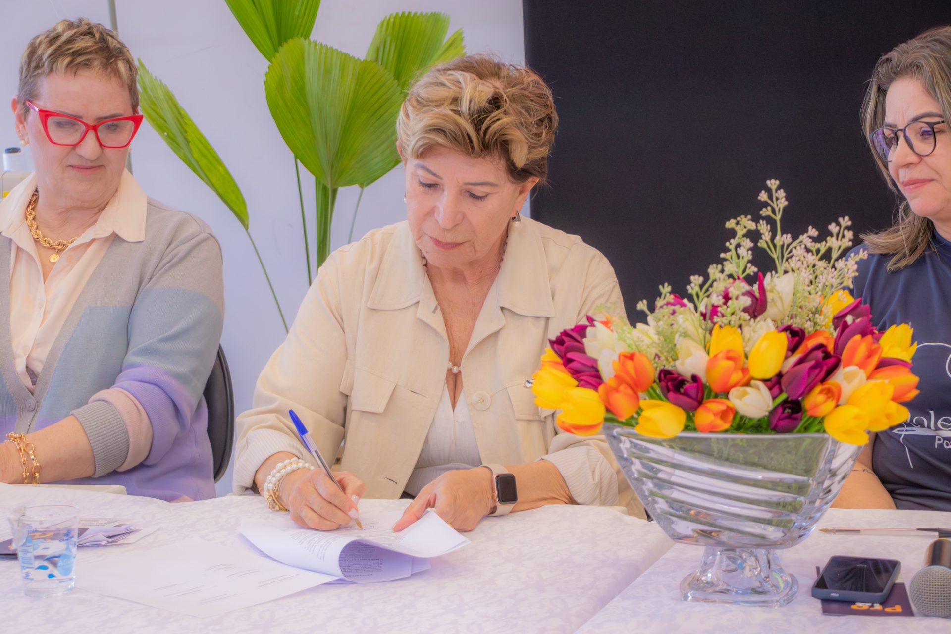 A solenidade também marcou a assinatura do termo de intenções entre a Prefeitura Municipal de Ponta Grossa e a Vara da Infância e Juventude. A professora Taciana Cordazzo, responsável pela coordenação da participação do Departamento de Administração no projeto, explicou que a Universidade não participou da assinatura, mas contribui por meio da “oferta de cursos, palestras e oficinas de empreendedorismo voltadas às mulheres atendidas”.
