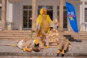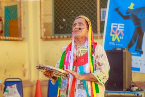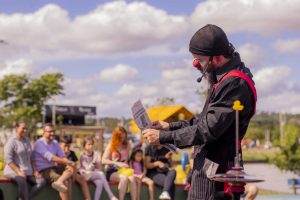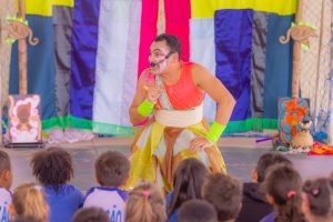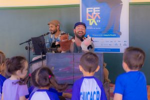 Kevin Braga Contente apresentou uma peça totalmente inspirada na sua infância. Para a Mostra Especial, ele apresentou “O menino de Lugar Nenhum” em escolas da cidade. “Quando eu era criança, gostava de imaginar histórias com personagens e eu desenhava bonecos para montar minhas brincadeiras, e essa peça é praticamente um plágio da minha infância, pois utilizo muitos elementos dessa época”. Para compor o cenário, o ator trouxe elementos coloridos, máscaras, livros, fitas coloridas e brinquedos. Nascido em Belém e residente em Ponta Grossa há 5 anos, Kevin celebra o fato de estar pela primeira vez no Fenata com uma peça inteiramente autoral. “Foi maravilhoso. Cada dia foi um lugar diferente e as crianças têm gostado muito. Foi uma correria bem gratificante”.