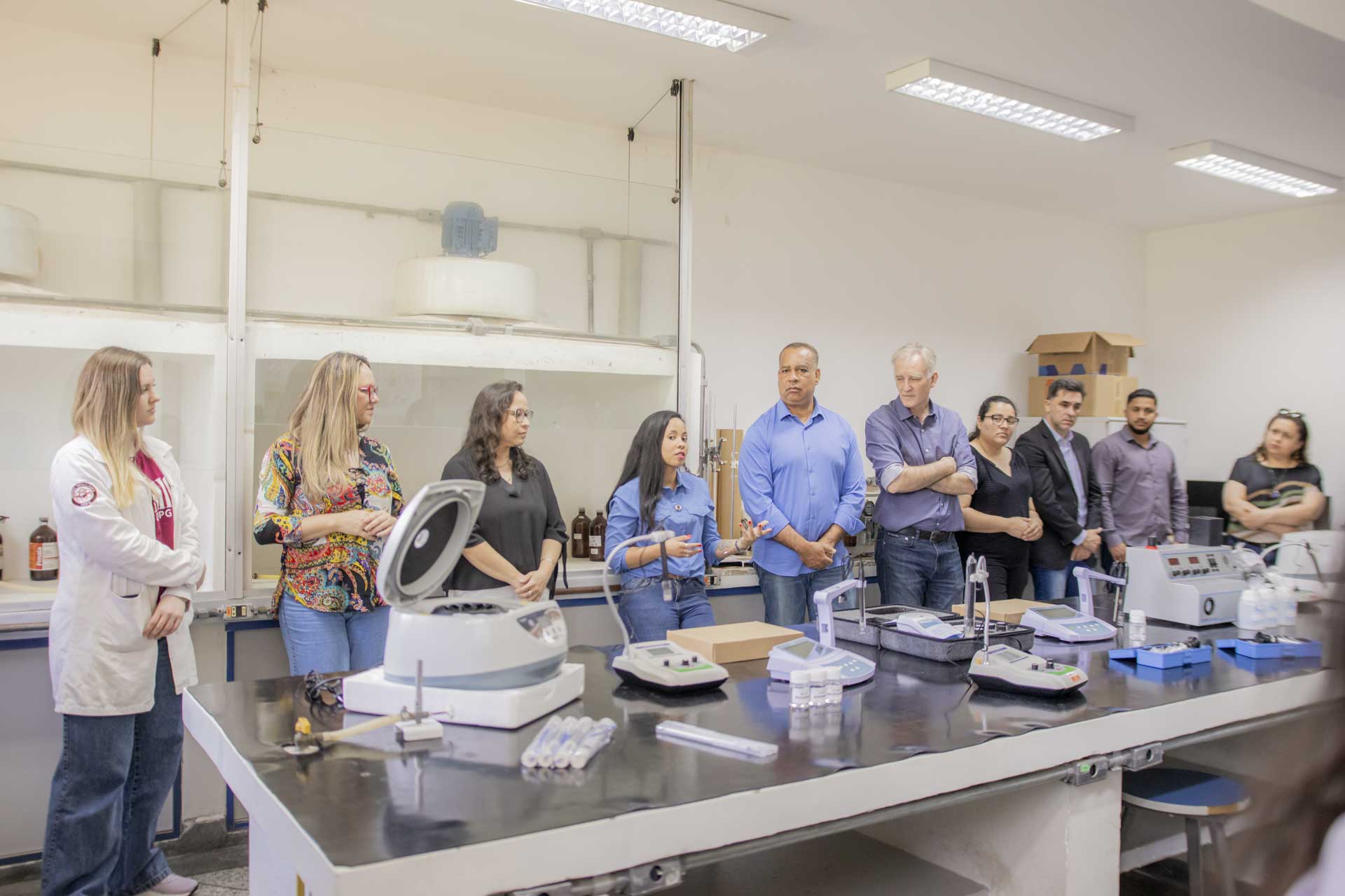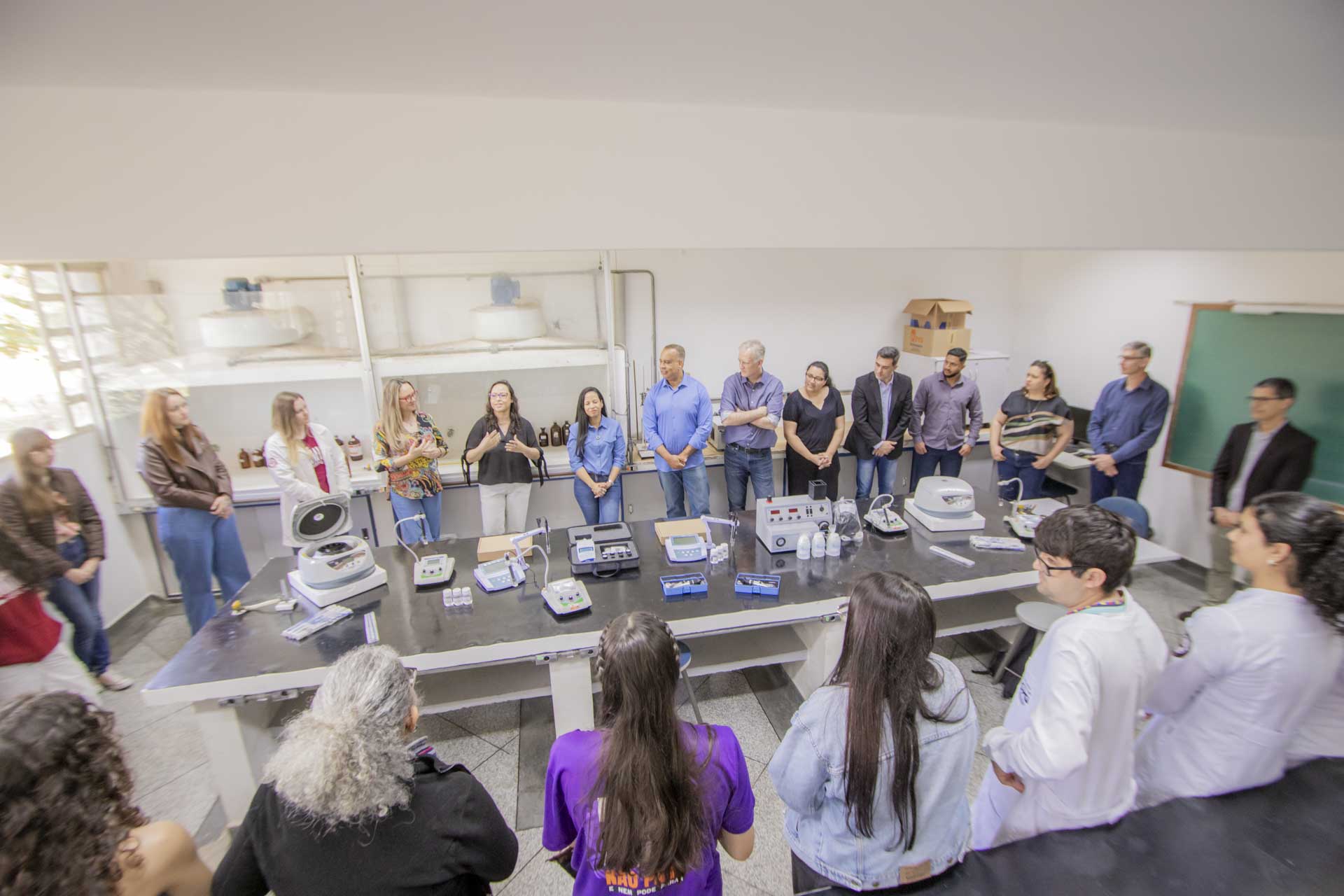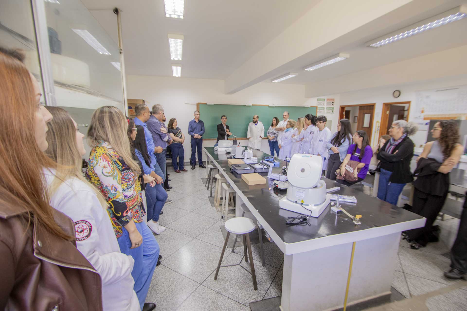 A professora Suellen Aparecida Alves destaca a alta taxa de empregabilidade do Bacharelado em Química Tecnológica: “reflexo da forte presença de empresas nos setores químico, biocombustíveis, alimentício e de papel e celulose na região de Ponta Grossa e Campos Gerais. Muitos de nossos egressos ingressam rapidamente no mercado de trabalho, ocupando funções estratégicas em indústrias locais”, comemora. “Recebemos com satisfação a entrega de novos equipamentos de laboratório e computadores para nossos laboratórios de ensino do Departamento de Química. Esses recursos serão utilizados diretamente em aulas práticas e projetos de iniciação científica, oferecendo aos estudantes melhores condições para desenvolver competências técnicas essenciais ao trabalho em indústrias”, agradece. Foram adquiridos equipamentos de laboratório, como fotômetro de chama, refratômetro, centrífugas, condutivímetro, turbidímetro, entre outros.