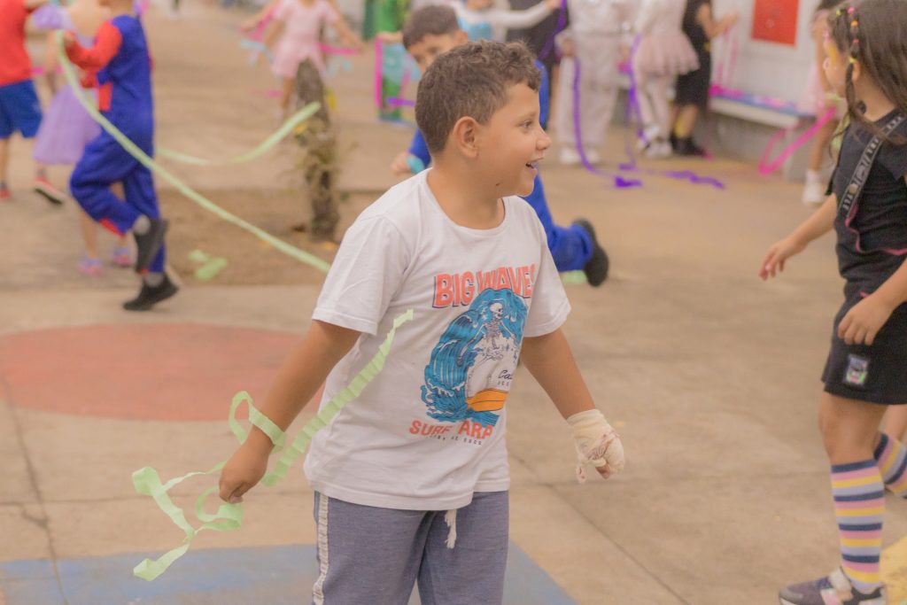 De acordo com a diretora-geral do Caic, Rosiane Machado da Silva, a proposta da atividade é proporcionar um espaço de socialização e fortalecer os vínculos entre as crianças e a comunidade escolar. “É uma festa que já vem sendo realizada ao longo dos anos, sempre com esse nome, porque o nosso objetivo é fazer esse momento de confraternização com as crianças. A gente oportuniza a socialização, a troca de conhecimentos entre eles, as brincadeiras, e possibilita que aqueles que quiserem venham de fantasias. Com isso a gente acaba tendo também a participação dos pais“, explica.