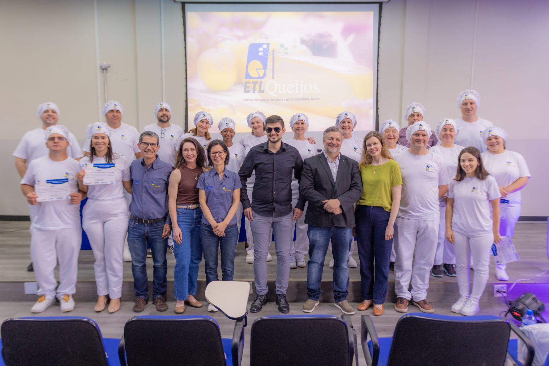 A Universidade Estadual de Ponta Grossa (UEPG) formou, no último sábado (25), a 14ª turma de mestres queijeiros pela Escola Tecnológica de Leite e Queijos dos Campos Gerais (ETL-Queijos). A formatura aconteceu juntamente com o 13º Workshop Internacional de Leite e Queijos, no Centro Integrar, Campus Uvaranas. O evento fecha as atividades do ano da ETL, que contou com oito módulos realizados aos finais de semana. Nesta edição, 17 pessoas, vindas de várias regiões, realizaram o curso.