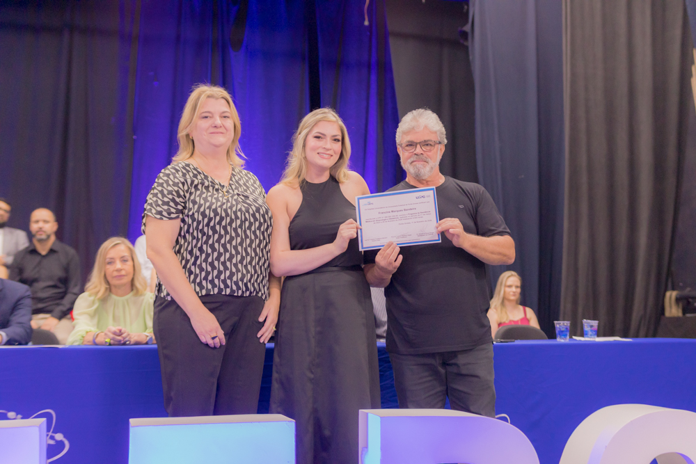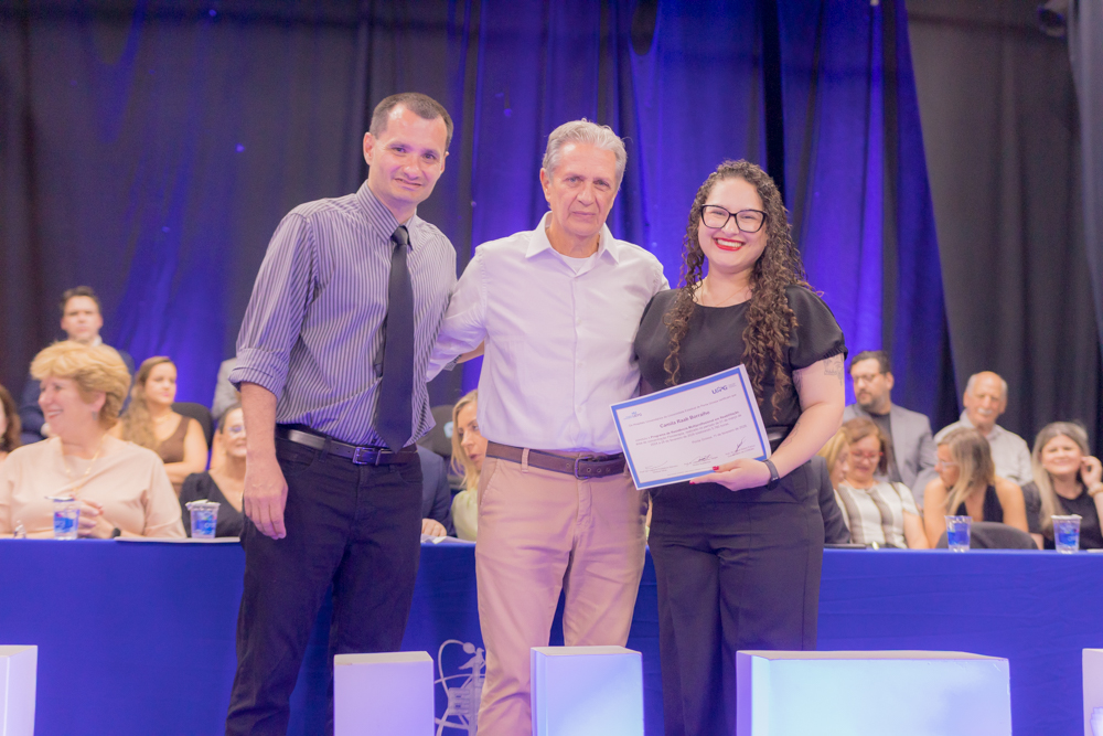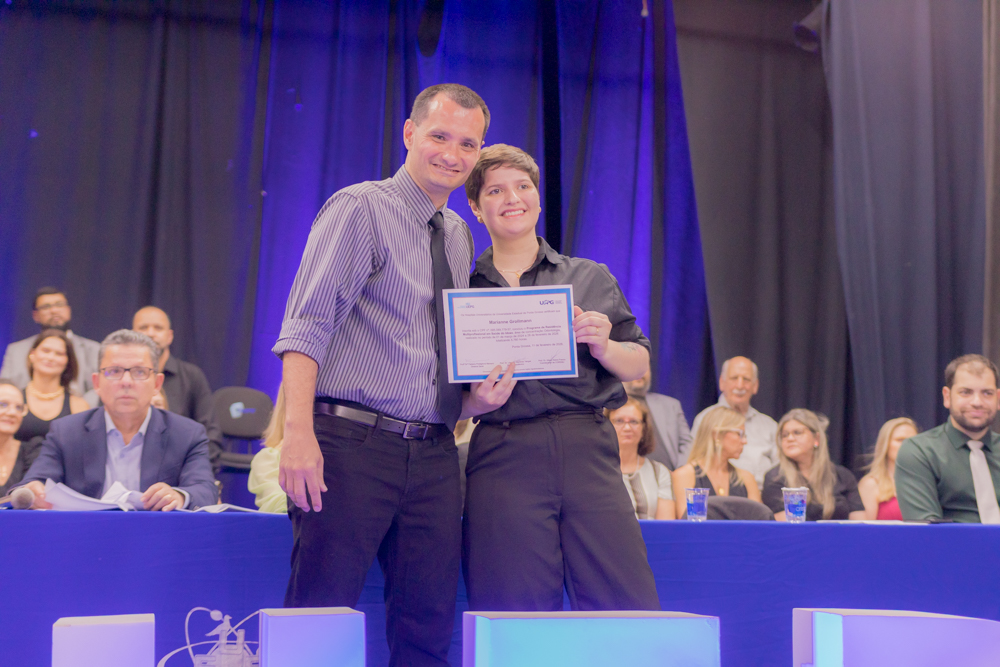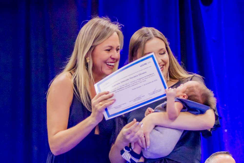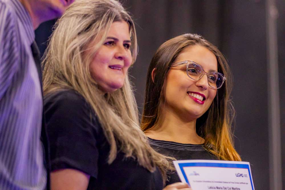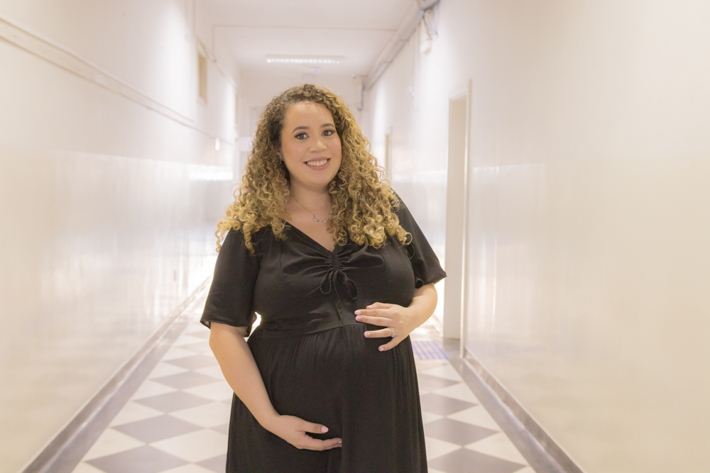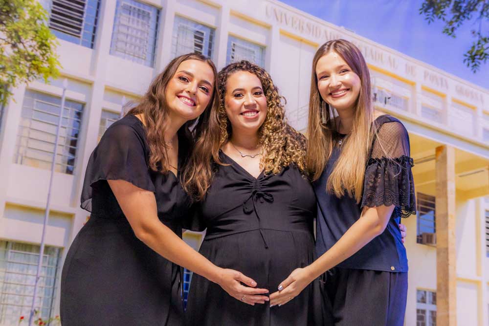 Caroline Amanda da Silva foi surpreendida durante a residência em Enfermagem Obstétrica. Formada pela UEPG, a gravidez foi uma surpresa e não a impediu de realizar esse sonho. “Foi uma surpresa, mas foi ótimo estar ali com todo mundo. Fui muito mimada durante a residência”. Com 39 semanas de gestação ela pôde subir no palco para pegar o tão sonhado diploma. “Aprendi muito e acho que foi um aprendizado ainda maior estar gestante e atender as gestantes. A gente se coloca muito mais no lugar e elas também são mais abertas para conversar comigo, para falar das experiências. A formação em si foi perfeita, as enfermeiras e os médicos sempre deram muito apoio e deixavam a gente muito à vontade para a gente aprender tudo”, afirma.