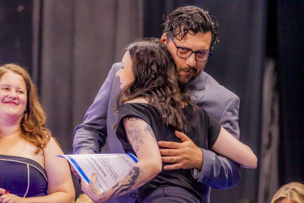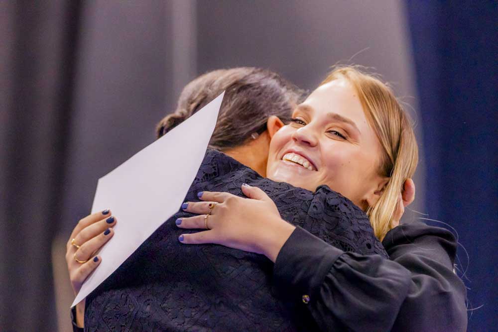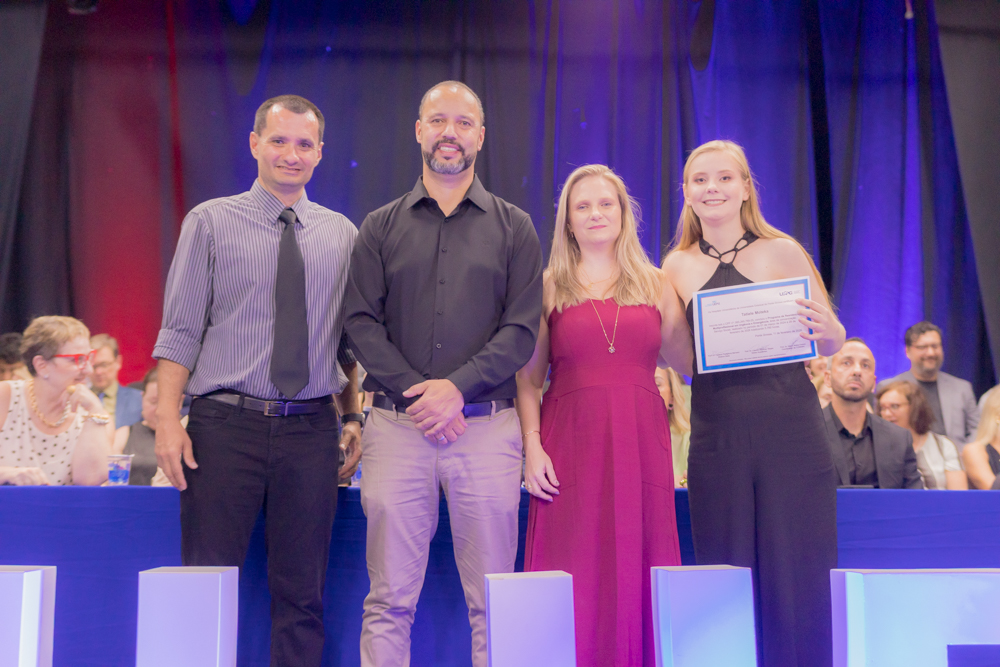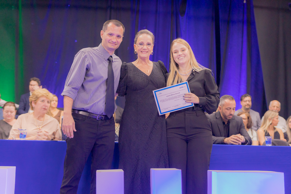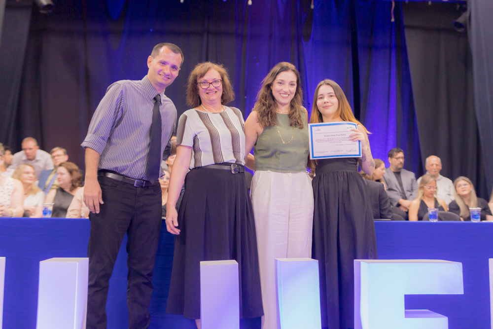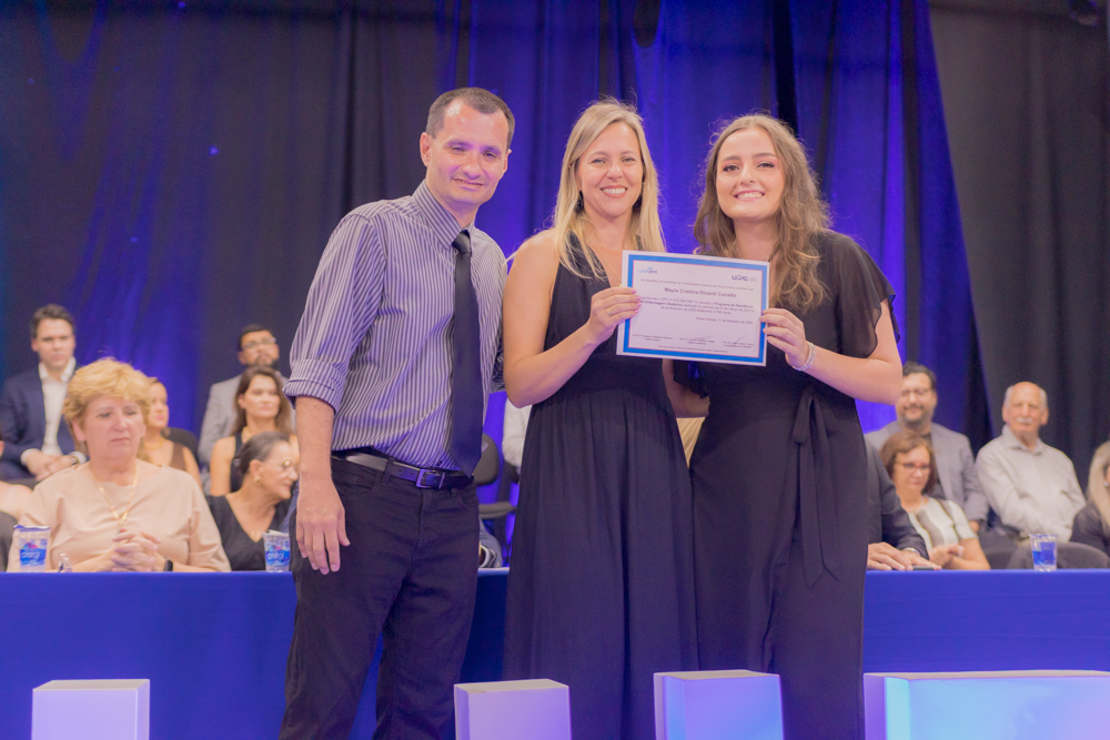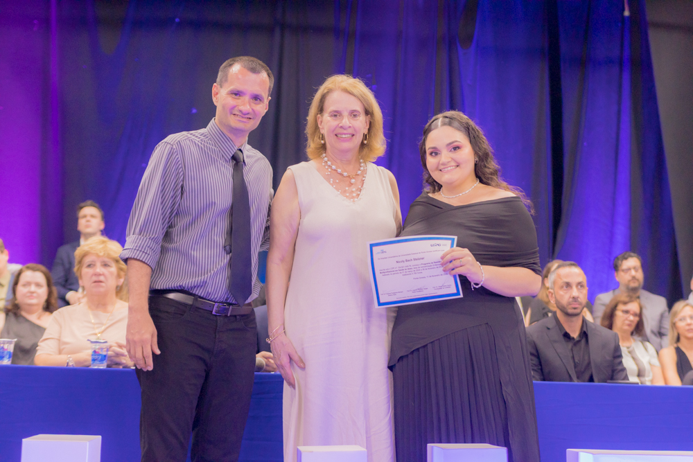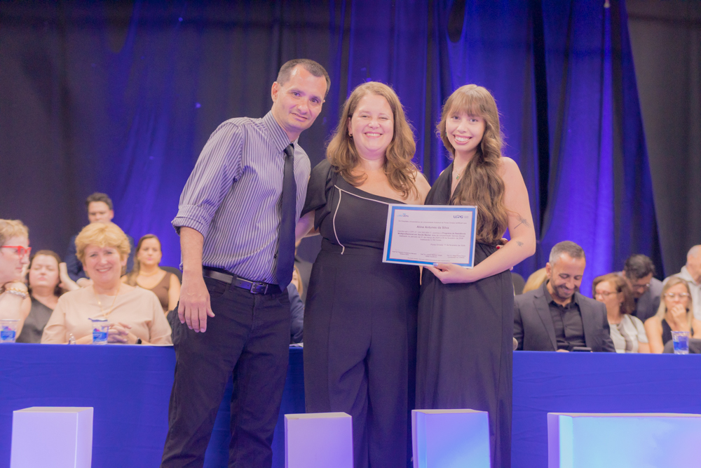 Caroline Amanda da Silva foi surpreendida durante a residência em Enfermagem Obstétrica. Formada pela UEPG, a gravidez foi uma surpresa e não a impediu de realizar esse sonho. “Foi uma surpresa, mas foi ótimo estar ali com todo mundo. Fui muito mimada durante a residência”. Com 39 semanas de gestação ela pôde subir no palco para pegar o tão sonhado diploma. “Aprendi muito e acho que foi um aprendizado ainda maior estar gestante e atender as gestantes. A gente se coloca muito mais no lugar e elas também são mais abertas para conversar comigo, para falar das experiências. A formação em si foi perfeita, as enfermeiras e os médicos sempre deram muito apoio e deixavam a gente muito à vontade para a gente aprender tudo”, afirma.