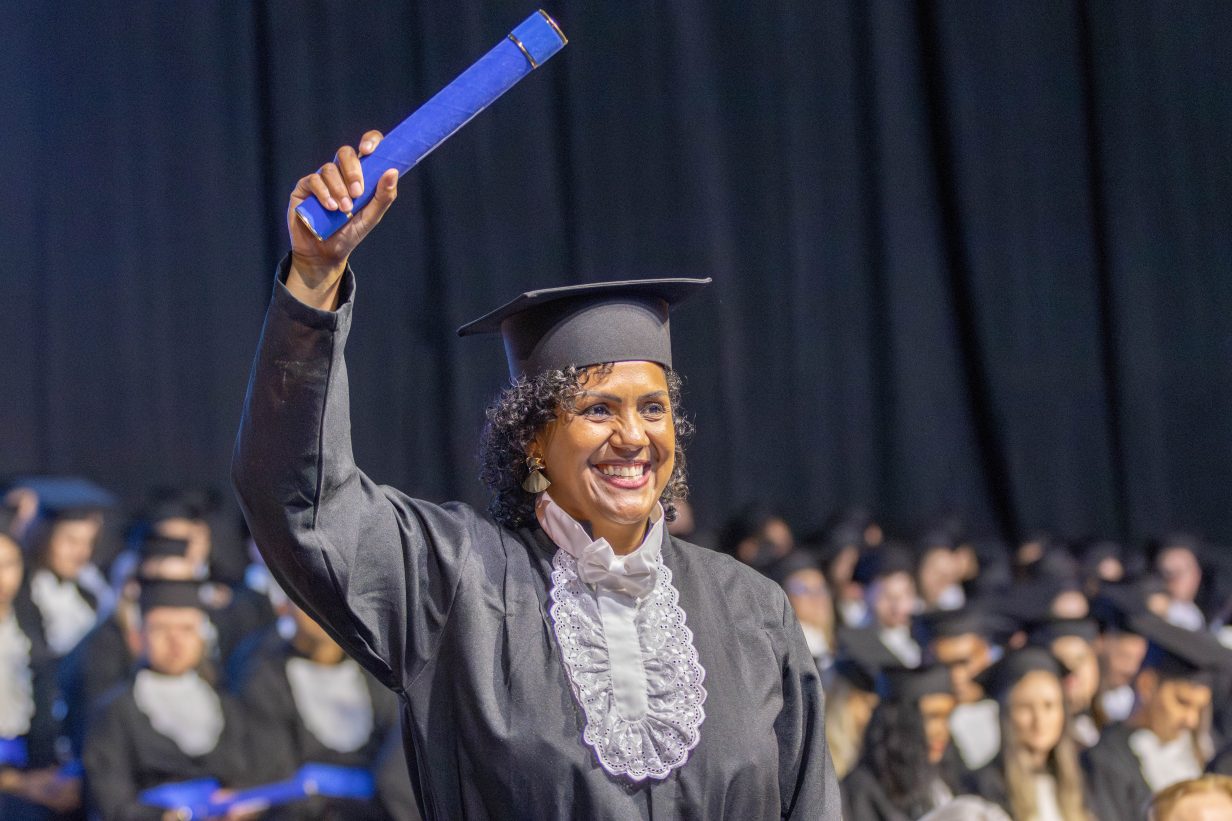 Licenciada em Matemática, Fabiane Peremibida Iarochevski destaca o significado da cerimônia. “Formar-me em uma Universidade renomada, no curso dos meus sonhos, sempre foi um dos meus maiores objetivos. Concretizei esse sonho em 2025, e ainda me sinto extasiada por essa conquista”, relata. Para ela, o momento é ainda mais emocionante por reunir pessoas importantes da sua vida e possibilitar registros desse dia tão especial. “Isso nos permite guardar lembranças inesquecíveis para sempre. Sou imensamente grata por todas as oportunidades que a UEPG me proporcionou, e participar da formatura institucional é, sem dúvida, uma delas”, afirma.