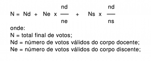 O resultado da apuração por chapa é definido por uma expressão ponderada, definida na Resolução Universitária nº 36 de 28 de agosto de 2009, que estabelece uma equivalência entre os votos de docentes, discentes e agentes universitários. Ao todo, 15.626 pessoas estão aptas a votar; são 911 docentes, 888 agentes e 13.827 acadêmicos.