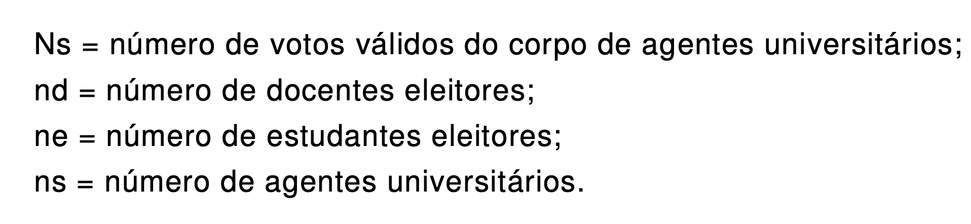 O resultado da apuração por chapa é definido por uma expressão ponderada, definida na Resolução Universitária nº 36 de 28 de agosto de 2009, que estabelece uma equivalência entre os votos de docentes, discentes e agentes universitários. Ao todo, 15.626 pessoas estão aptas a votar; são 911 docentes, 888 agentes e 13.827 acadêmicos.