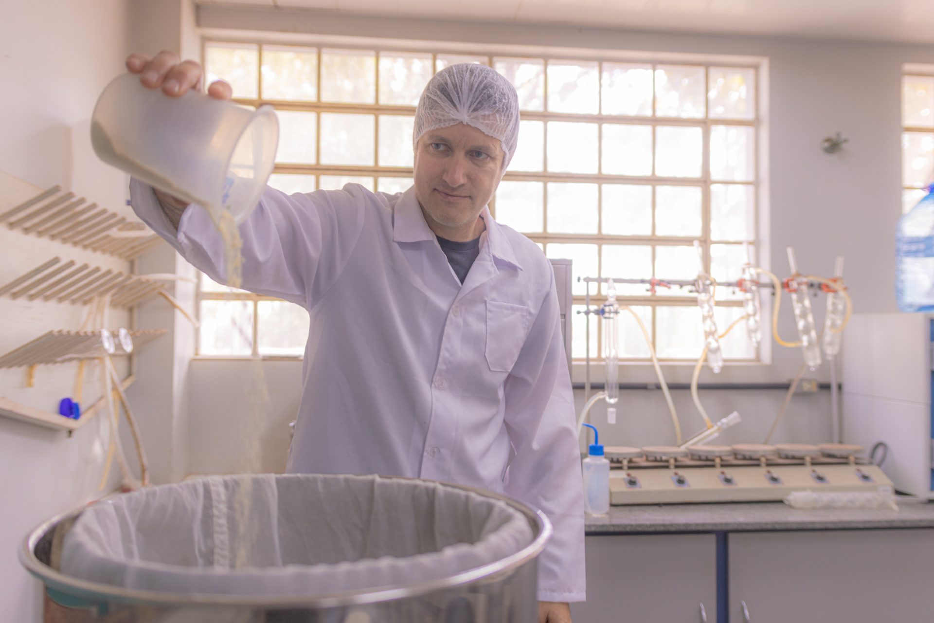 A produção de cerveja também ganha destaque nas pesquisas que Luiz Gustavo conduz. Na Iniciação Científica (Pibic), ele orienta a aluna Gabriela Tkaczuk Silva, que busca alternativas sustentáveis para a fabricação da bebida. Uma das saídas pesquisadas pela dupla é utilizar a farinha de rosca como ingrediente. “A gente utiliza o pão com uma proposta sustentável, utilizando o carboidrato e o açúcar como formas de fermentação. Então a gente substitui parte do malte por essa farinha de rosca”, conta a Gabriela.