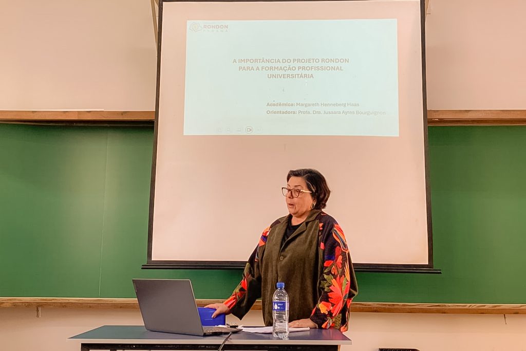 “Você vê eles aprendendo a língua portuguesa, porque eles querem arrumar trabalho, eles precisam vencer essa barreira do idioma. E eles são bastante dedicados também”, explica Margareth. Além do Promigra, o Projeto Rondon foi um dos grandes incentivadores de Margareth dentro da Universidade – tema que, inclusive, se tornaria o foco do seu TCC. Em 2024, Margareth participou da Operação Rondon Paraná em Reserva do Iguaçu (PR). “Eu me inscrevi sem expectativa. Eu pensava que estava muito idosa para essas coisas”, explica.