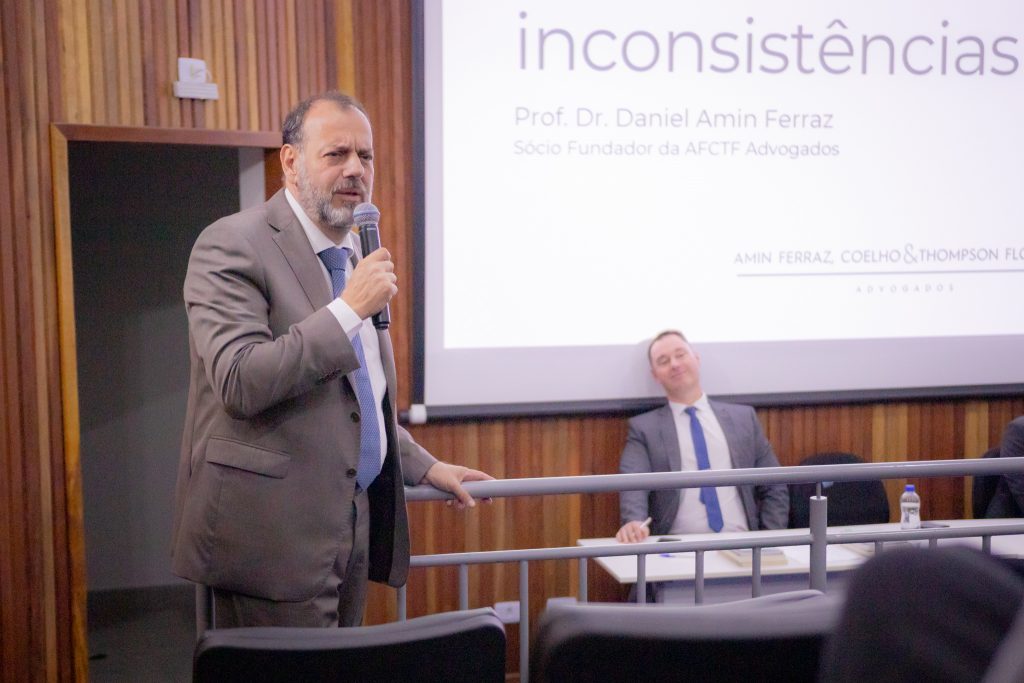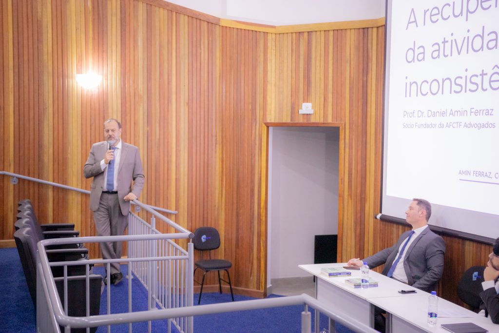 Amin disse ainda que a discussão desse tema é muito relevante pelo impacto econômico que gera, já que a Lei de recuperação judicial tenta manter a atividade empresarial. “Com frequência, nós estamos passando por processos e deferimentos de recuperação judicial que me parece que não cumprem os requisitos da própria lei. E isso prejudica e dificulta o crédito, o que consequentemente vai gerar uma taxa de juros ainda mais elevada para o mercado. O bom pagador irá pagar pelo mal pagador”, finaliza. Os professores de Direito Volney Campos dos Santos e Elisabeth Mônica Hasse Becker Neiverth também participaram do evento.