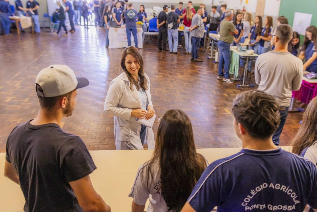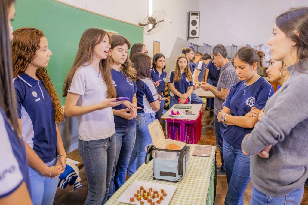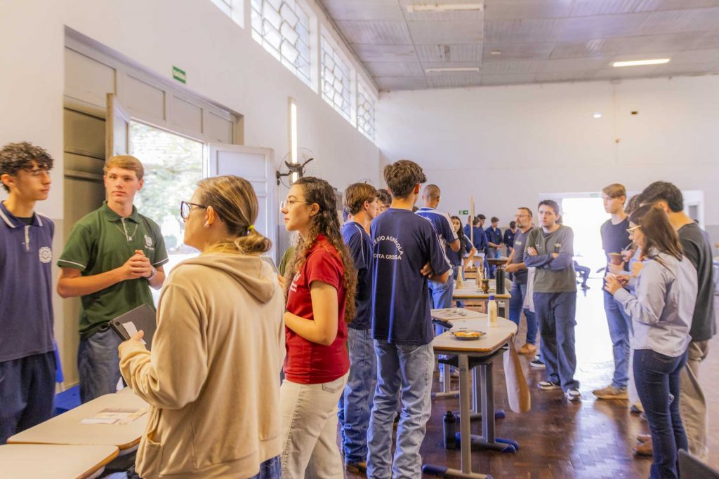 Na última quinta-feira (27), o Colégio Agrícola Augusto Ribas da Universidade Estadual de Ponta Grossa (Caar-UEPG) realizou uma mostra de alimentos que reuniu 14 grupos de alunos do terceiro ano do curso técnico. Os estudantes apresentaram produtos desenvolvidos ao longo da disciplina de Práticas Agropecuárias, que no último ano tem ênfase em agroindústria e produção de alimentos. A mostra recebeu a visita de acadêmicos de Agronomia e Engenharia de Alimentos da UEPG, alunos do próprio Colégio Agrícola, além de egressos, professores e servidores. Cada visitante avaliou as produções apresentadas.