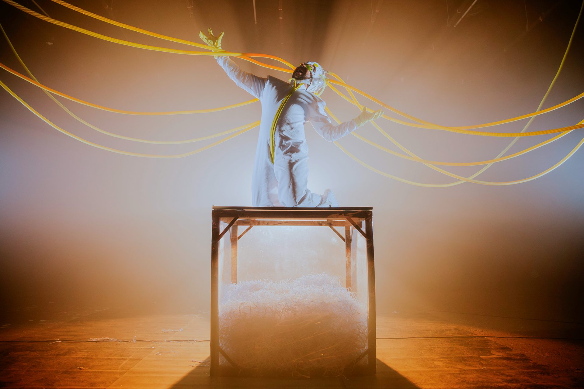Sinopse: Airerê e Kilezum’ é um espetáculo de teatro e dança que narra a delicada e intensa história do amor impossível entre um pássaro e um lagarto. Airerê habitante do céu; Kilezum, guardião da terra. Unidos pela paixão, mas separados por seus destinos, enfrentam o dilema de viver um sentimento que desafia a própria natureza: se Airerê descer, será devorado pela família do lagarto; se Kilezum tentar voar, sucumbirá àquilo que não pode ser. Inspirada no conto ‘Do amor de um pássaro por um lagarto’, de Gero Camilo, a dramaturgia mergulha nos “estados de presença” do corpo, fazendo do movimento a matéria-prima para revelar conflitos, afetos e superações. Em cena, a força simbólica do sertão surge como pano de fundo. Um sertão interior, que carregamos na alma, feito de sonhos, impossibilidades, desejos e entrega, onde amar é ousar o impossível e voar, mesmo quando não se tem asas.