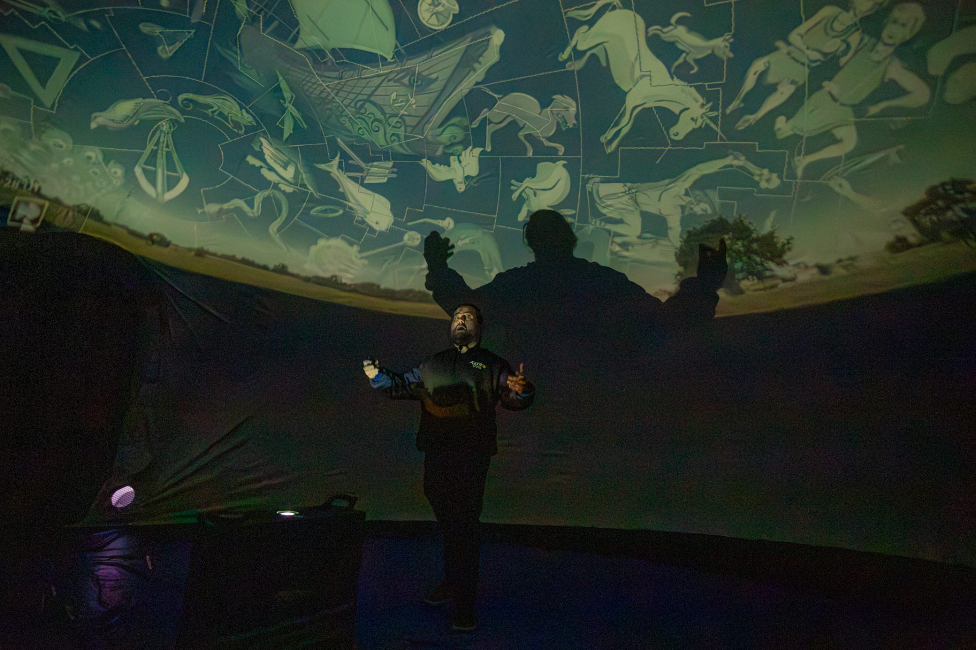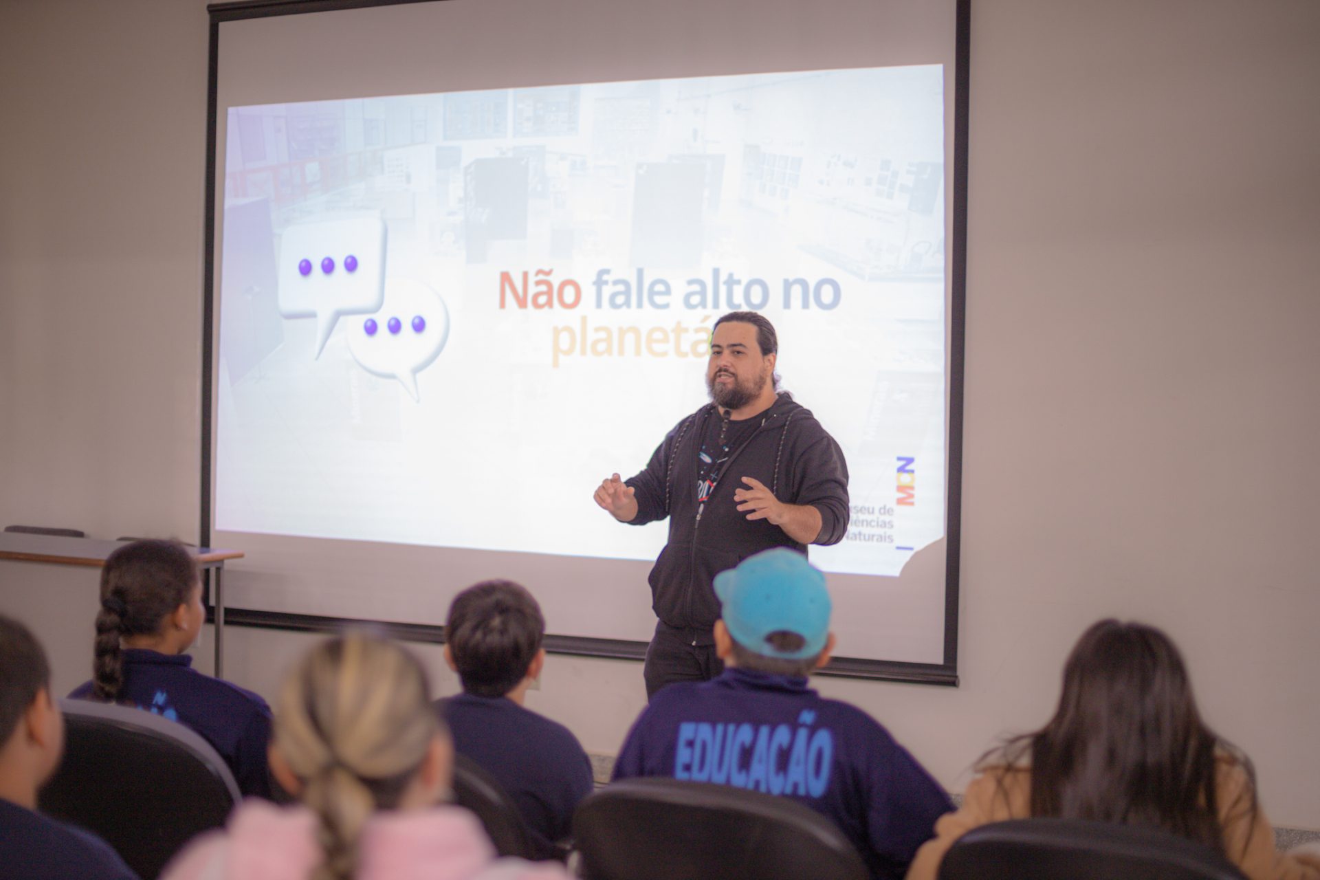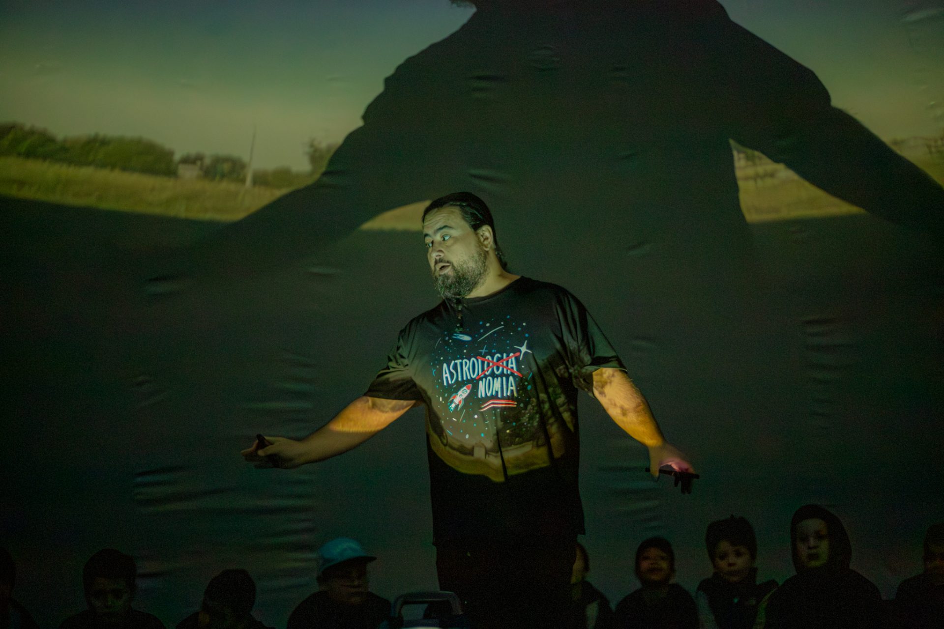 Guiar os visitantes no planetário tem sido tarefa de pesquisadores bolsistas da graduação e pós-graduação da UEPG. Antes de entrar no domo, os guias conduzem uma breve explicação sobre como funciona estar dentro do domo. Em seguida, todos são levado para dentro da cúpula inflável, onde uma projeção do universo leva para uma experiência imersiva na ciência. “Tem sido muito legal receber os estudantes no Planetário. Eu trabalho com divulgação desde a graduação, então ver a reação deles quando o céu aparece sempre me lembra porque escolhi a astronomia”, conta o doutorando em Física da UEPG e guia dos visitantes ao Planetário, Matheus Leal Castanheira. “Às vezes, ficamos tanto tempo presos na frente do computador, mergulhados na pesquisa, entre leitura de artigos, análise de dados e observações, que esquecemos como o céu impressiona quem está vendo tudo pela primeira vez. Ter esse contato humano, ouvir perguntas e compartilhar experiências é muito gratificante”.