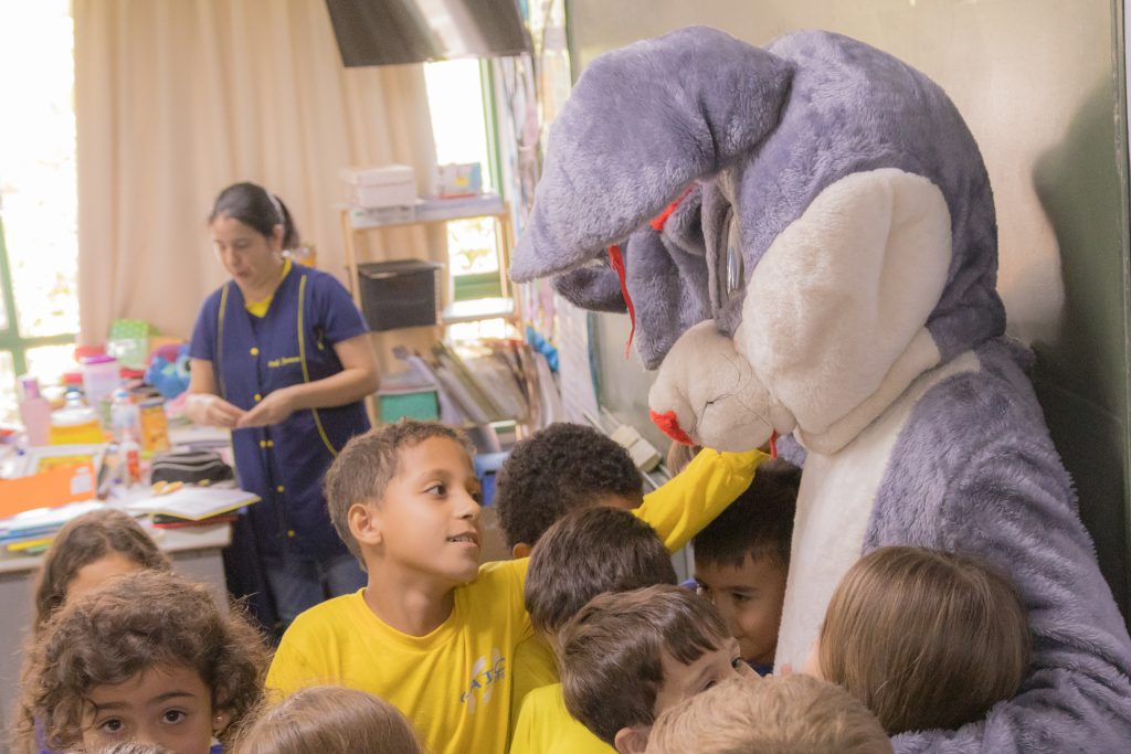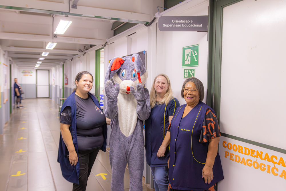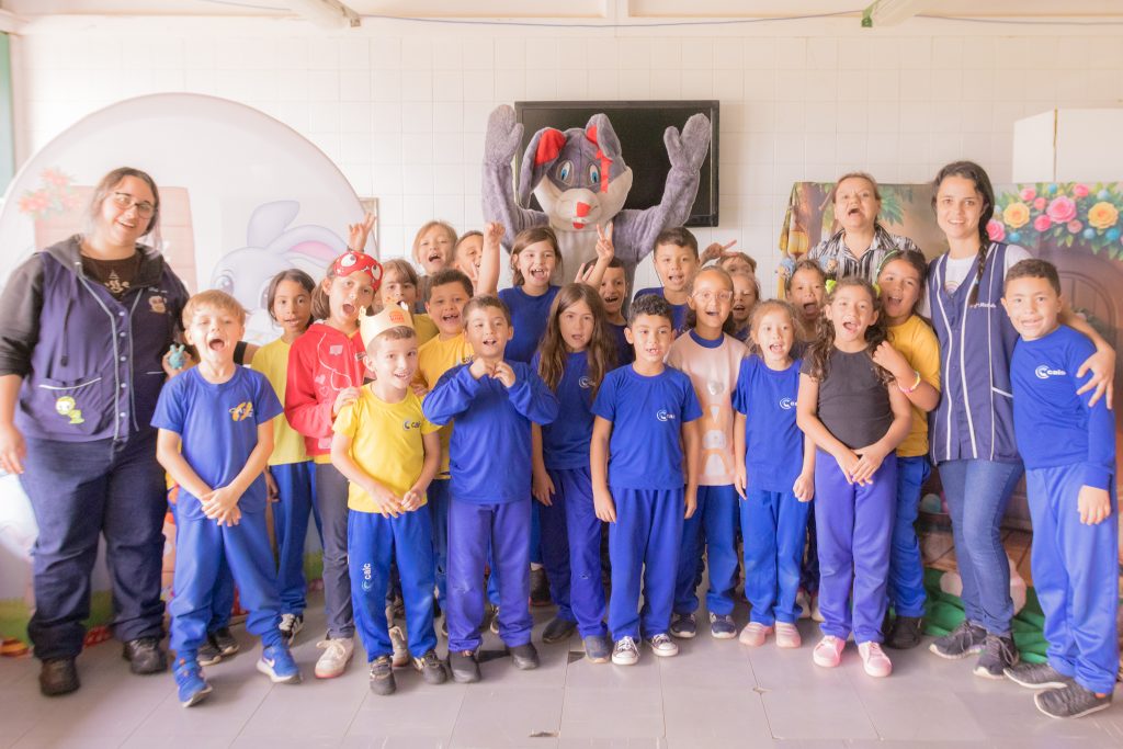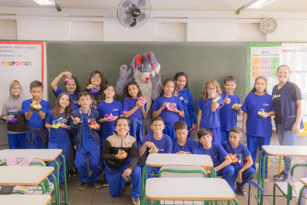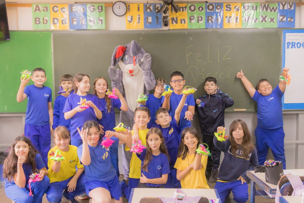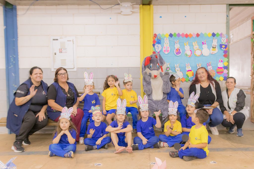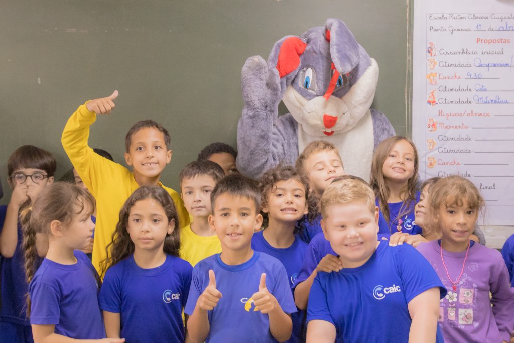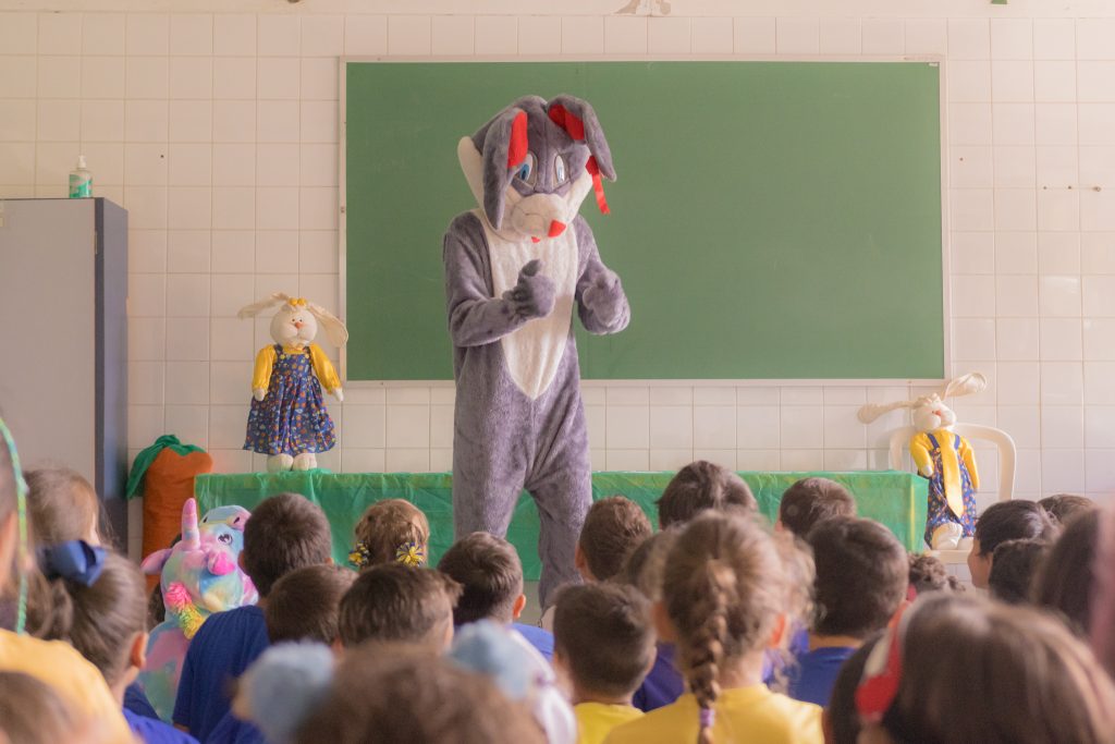 Os alunos do Centro de Atenção Integral à Criança da Universidade Estadual de Ponta Grossa (Caic-UEPG) receberam uma visita surpresa nesta quarta-feira (1). O coelhinho da Páscoa chegou saltitando na escola e distribuiu abraços, brincou e tirou fotos com as turmas.
