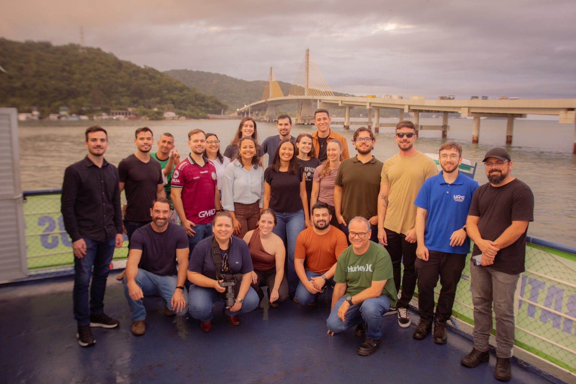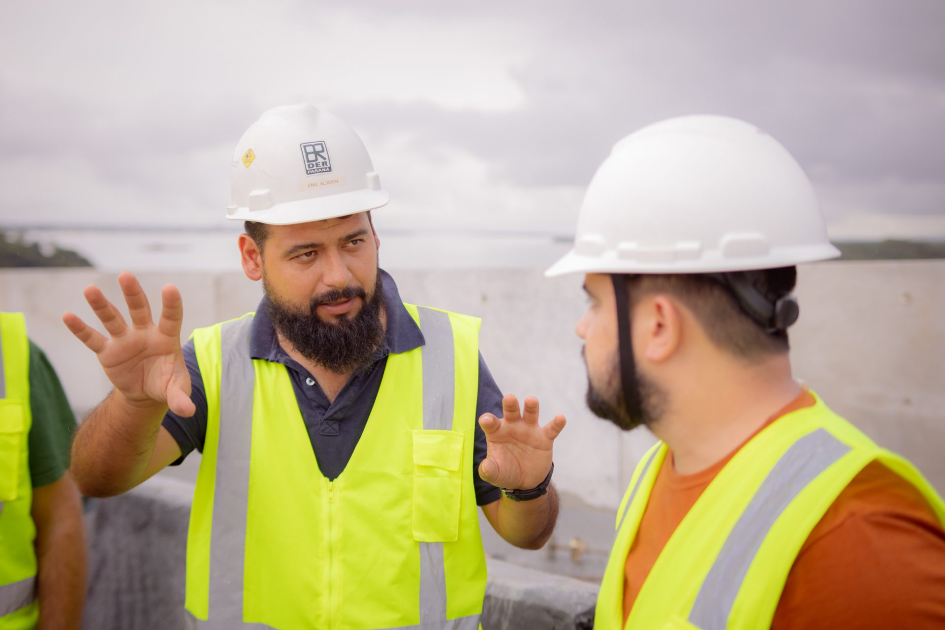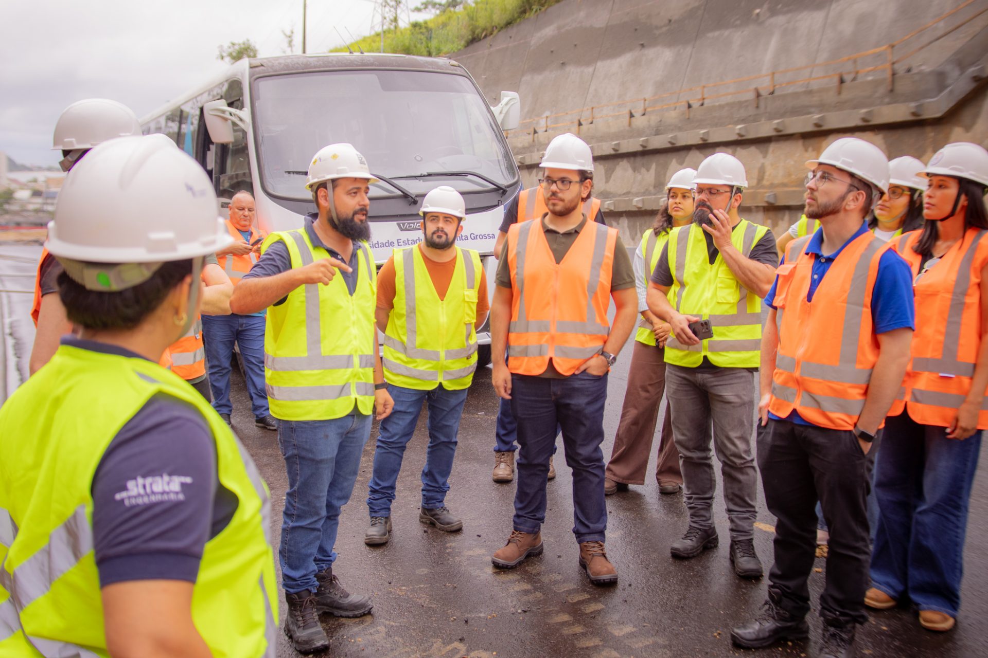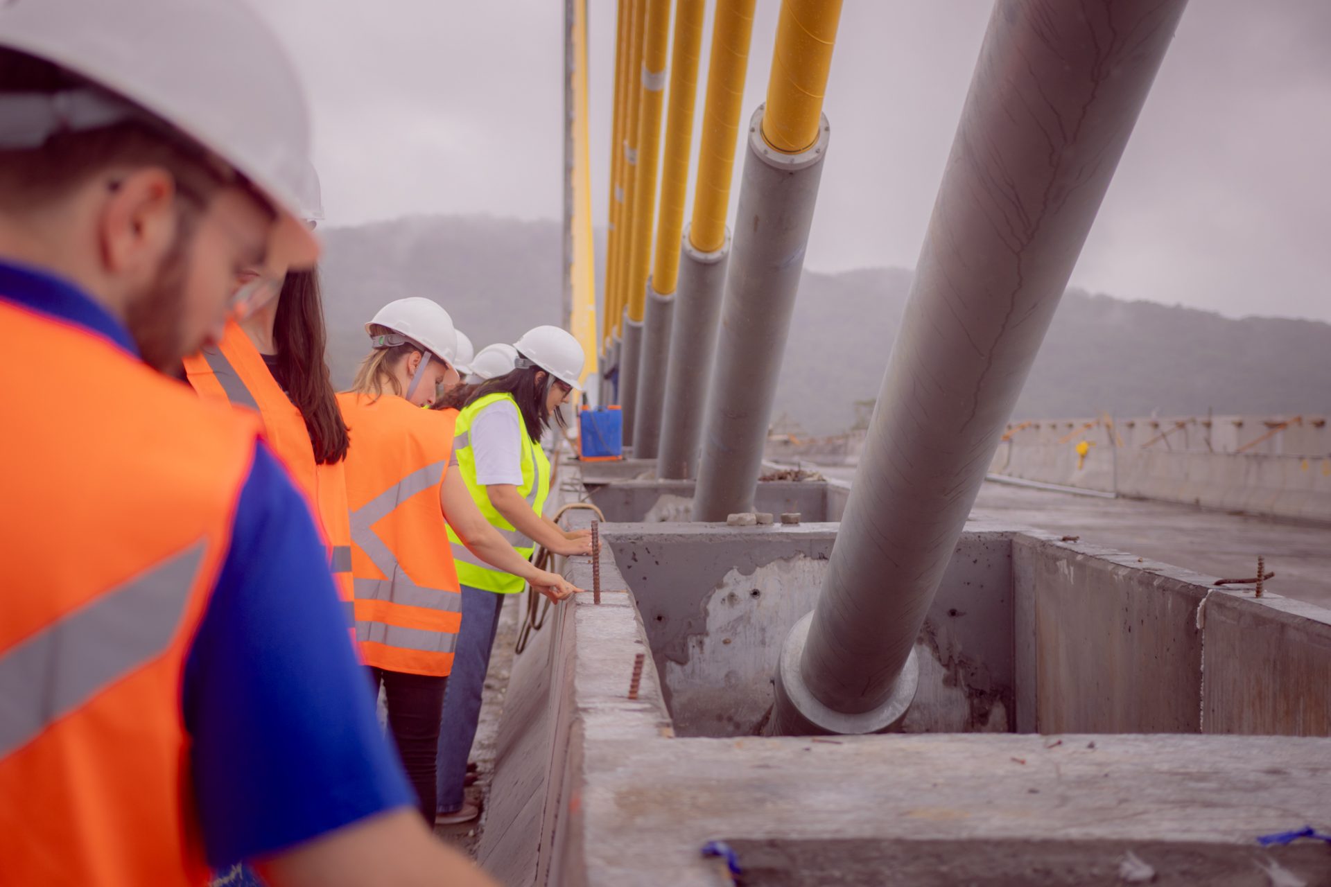 A visita iniciou com uma apresentação de Samuel Colucci, gerente de planejamento, qualidade e engenharia no Consórcio Nova Ponte. Ele detalhou os projetos de arquitetura e de engenharia da ponte e respondeu perguntas das equipes da Proplan e da Precam sobre o regime de contratação integrada, fiscalização e execução da obra. “É muito gratificante falar com pessoas que entendem do que você tá falando, da complexidade e da dificuldade de fazer uma obra dessas, e você pode entrar em detalhes que pessoas que não têm esse conhecimento não conseguiriam absorver para entender as dificuldades e os problemas”, considera Colucci. Em seguida, a comitiva da UEPG pode visitar as barragens do trecho de acesso do lado de Guaratuba e a parte estaiada da ponte, que está em processo de pavimentação.