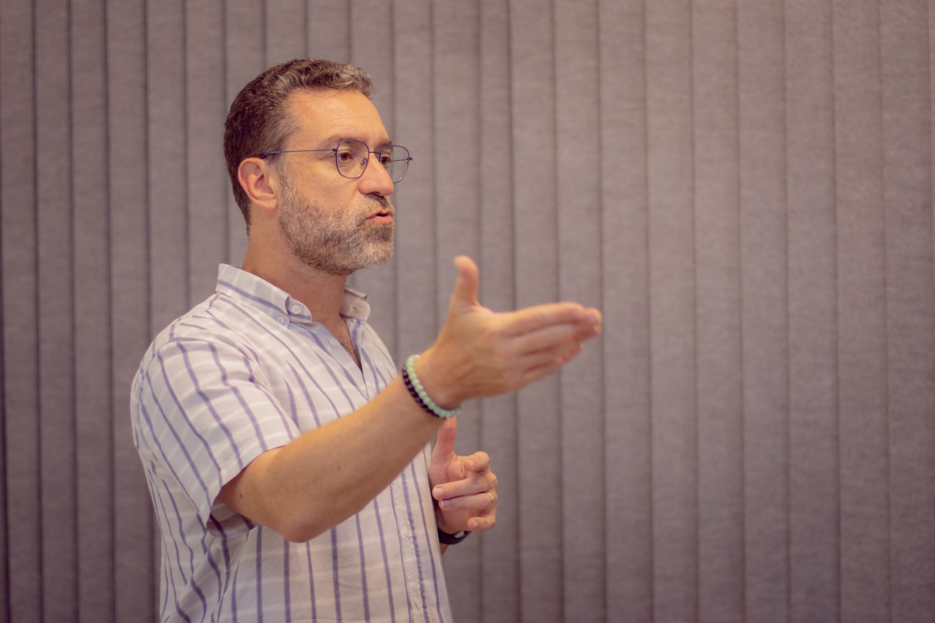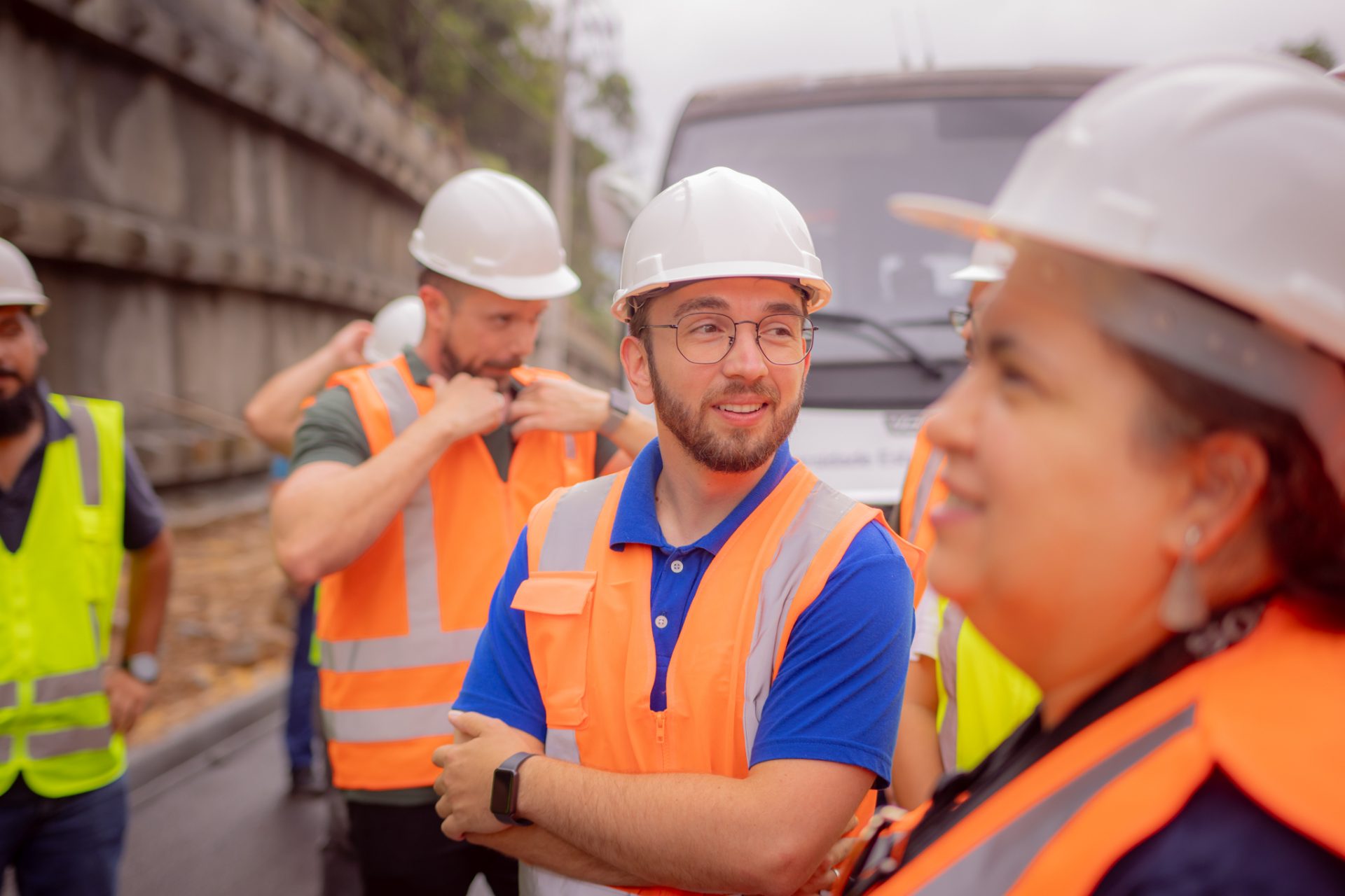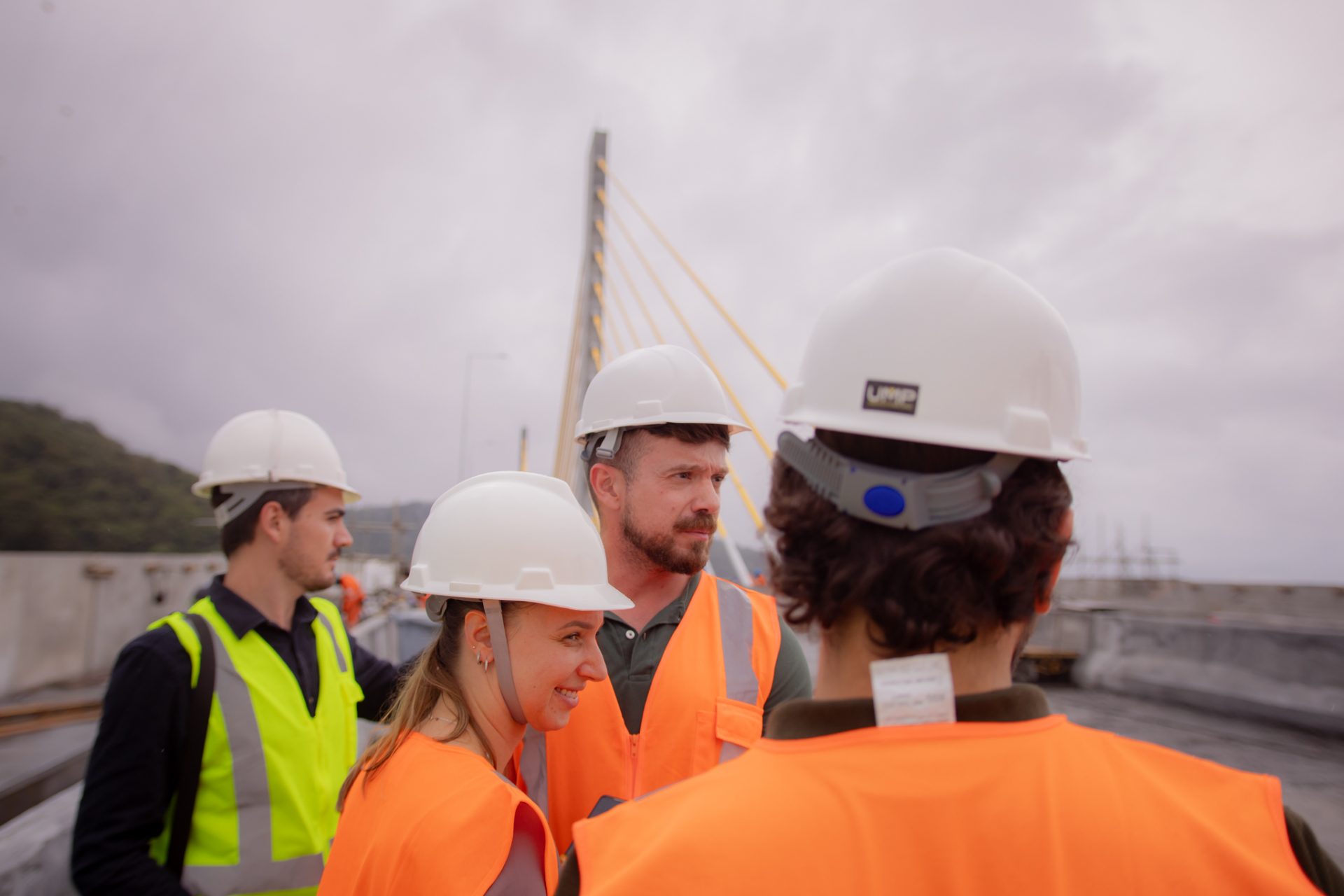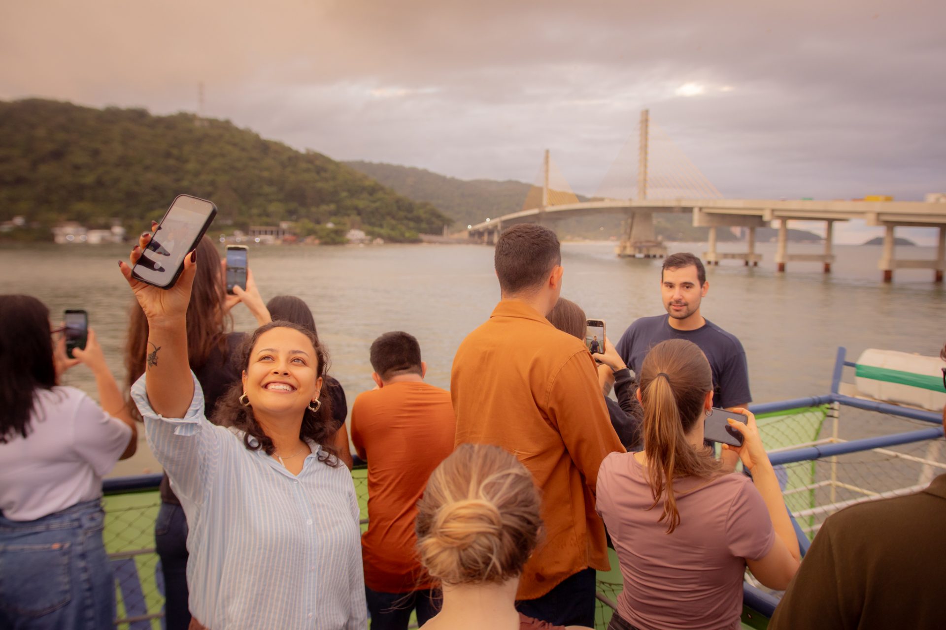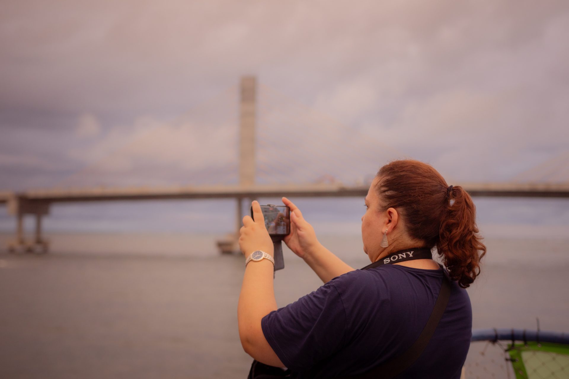 A visita iniciou com uma apresentação de Samuel Colucci, gerente de planejamento, qualidade e engenharia no Consórcio Nova Ponte. Ele detalhou os projetos de arquitetura e de engenharia da ponte e respondeu perguntas das equipes da Proplan e da Precam sobre o regime de contratação integrada, fiscalização e execução da obra. “É muito gratificante falar com pessoas que entendem do que você tá falando, da complexidade e da dificuldade de fazer uma obra dessas, e você pode entrar em detalhes que pessoas que não têm esse conhecimento não conseguiriam absorver para entender as dificuldades e os problemas”, considera Colucci. Em seguida, a comitiva da UEPG pode visitar as barragens do trecho de acesso do lado de Guaratuba e a parte estaiada da ponte, que está em processo de pavimentação.