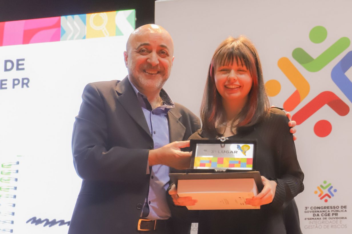 A premiação do concurso ocorreu no Campus I da Universidade Estadual do Paraná – Unespar, no Auditório Mário Schoemberger, durante o 3º Congresso de Governança Pública da CGE. Para demais informações, consultar o site da Controladoria-Geral do Estado do Paraná.