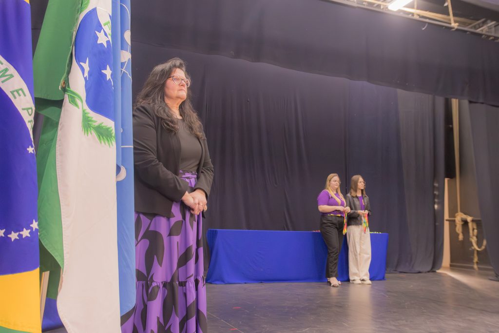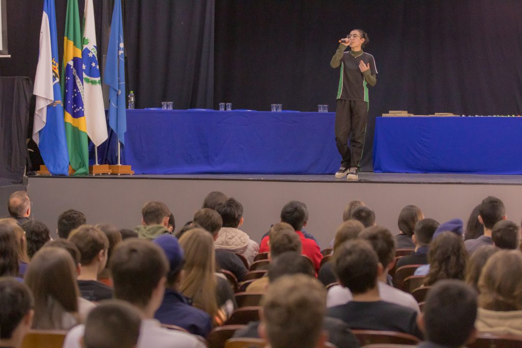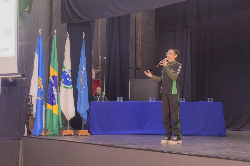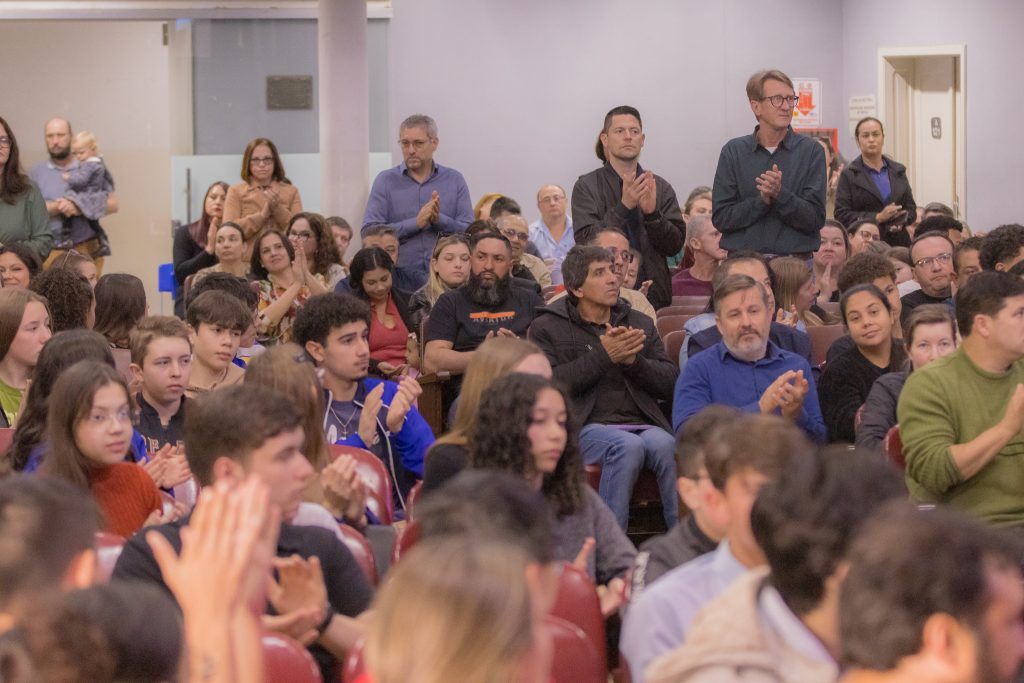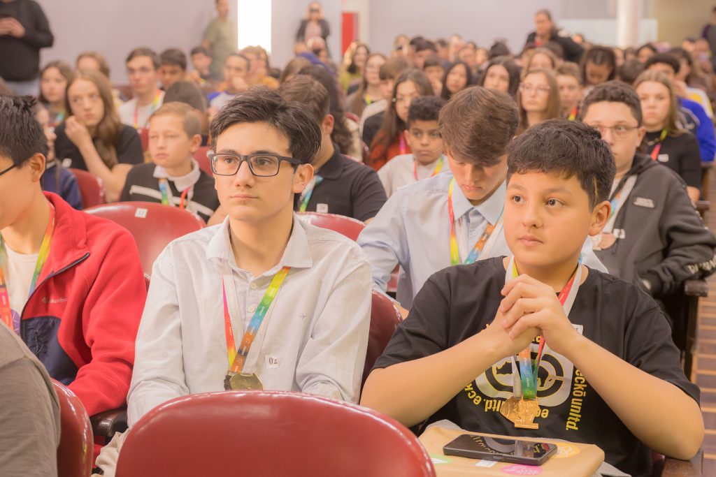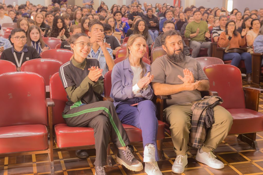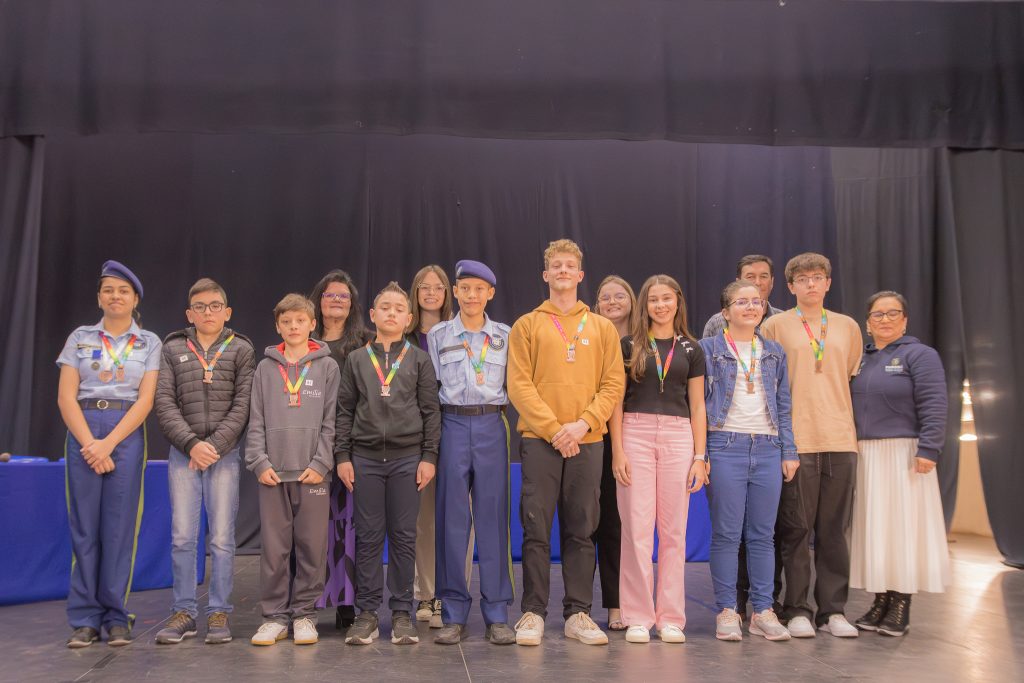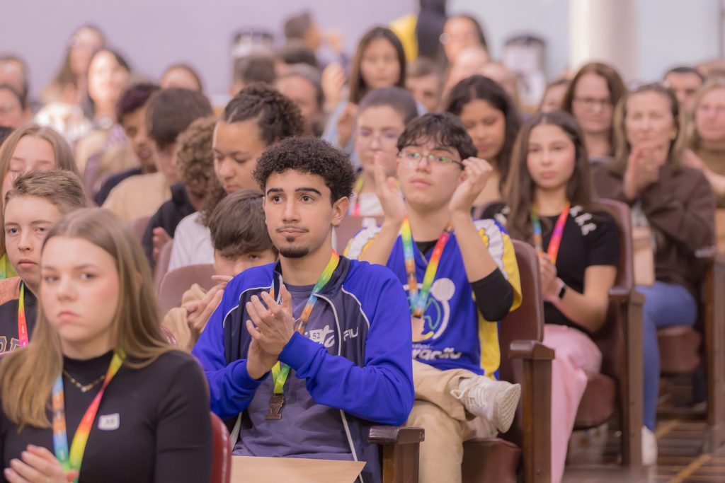 Entre os responsáveis pela organização da cerimônia estiveram bolsistas do projeto. Isabella Paola Matoski, aluna do segundo ano de Licenciatura em Matemática, conta que não teve a oportunidade de participar das Olimpíadas durante o período escolar, mas hoje vivencia a experiência de outra forma. “Gostaria de ter participado, acho muito legal”, afirma. Para ela, o envolvimento na organização das Olimpíadas e da cerimônia de premiação também é uma forma de acompanhar de perto o impacto da competição na vida dos estudantes. “É muito lindo de ver, tanto nos núcleos grandes, como Ponta Grossa e Curitiba, quanto nos menores. Nestes últimos, acho tão bonito porque acaba tendo uma interação maior com os pais e professores. Muitas vezes os pais sobem ao palco para colocar a medalha nos filhos, e a gente vê esse reconhecimento”, destaca.