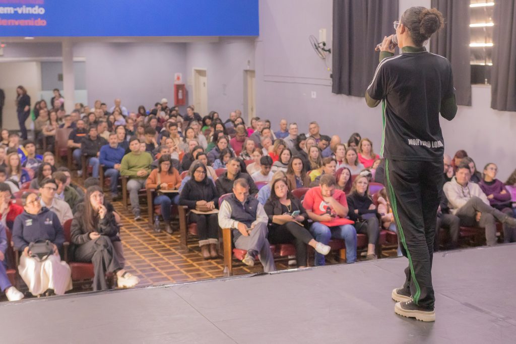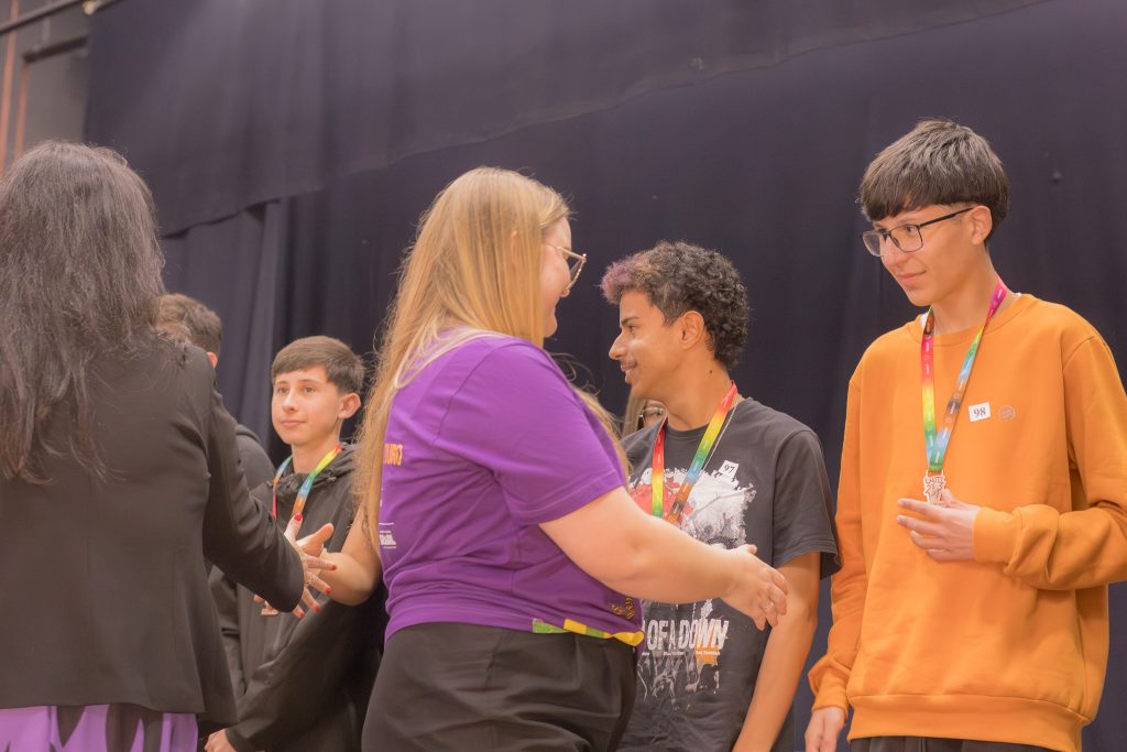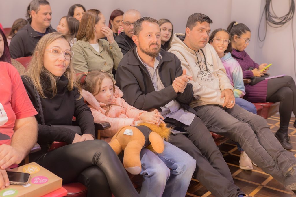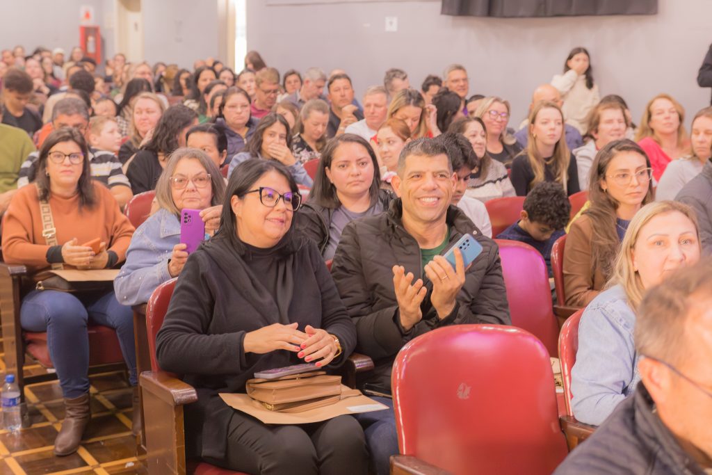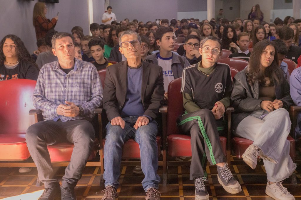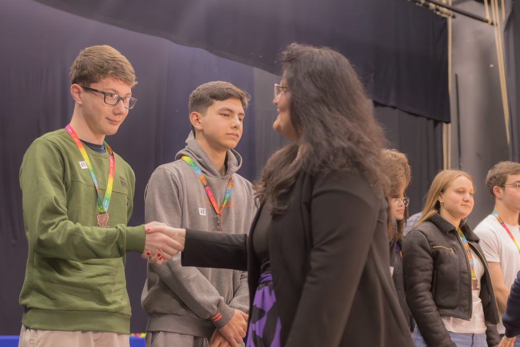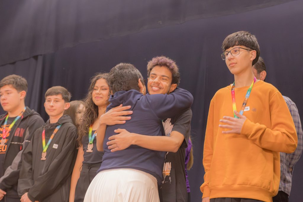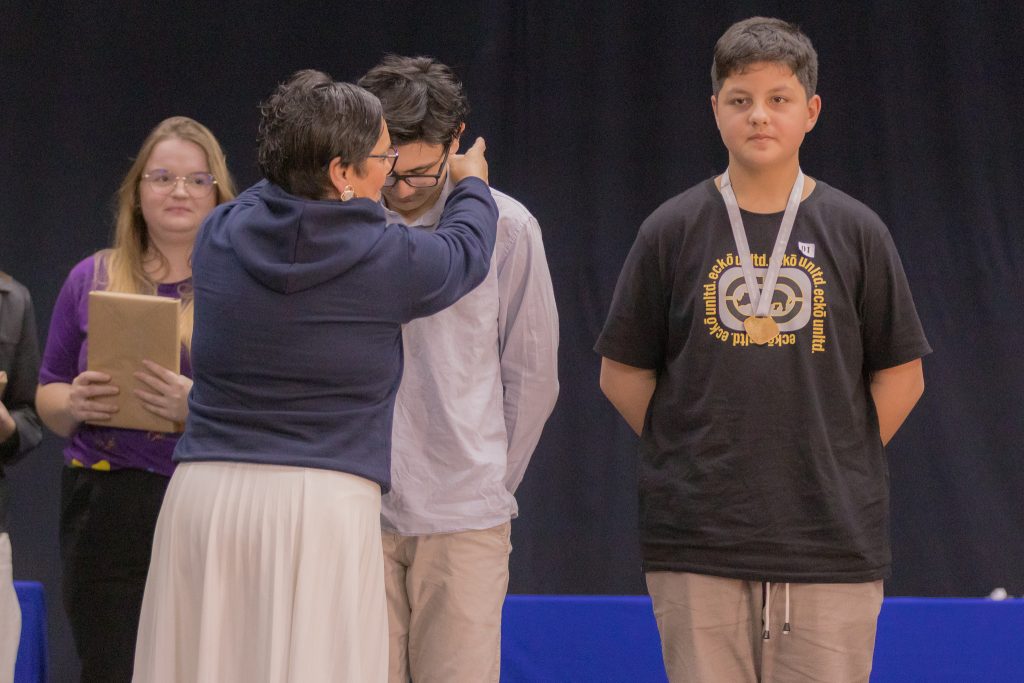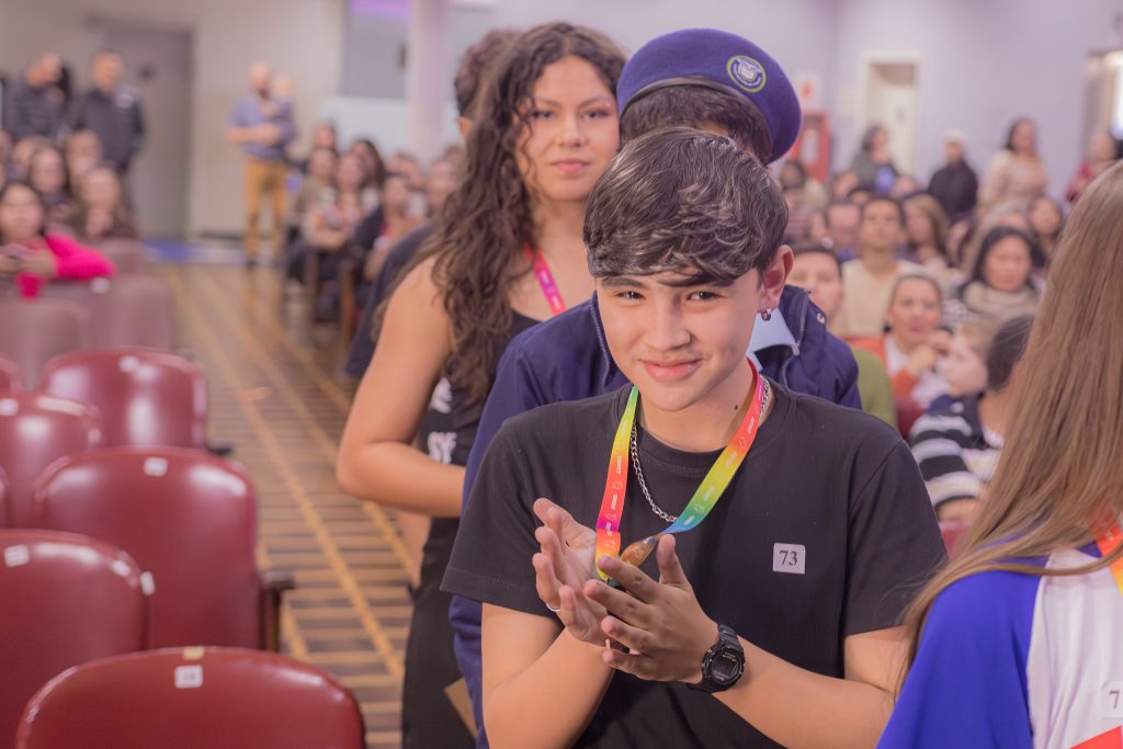 Entre os responsáveis pela organização da cerimônia estiveram bolsistas do projeto. Isabella Paola Matoski, aluna do segundo ano de Licenciatura em Matemática, conta que não teve a oportunidade de participar das Olimpíadas durante o período escolar, mas hoje vivencia a experiência de outra forma. “Gostaria de ter participado, acho muito legal”, afirma. Para ela, o envolvimento na organização das Olimpíadas e da cerimônia de premiação também é uma forma de acompanhar de perto o impacto da competição na vida dos estudantes. “É muito lindo de ver, tanto nos núcleos grandes, como Ponta Grossa e Curitiba, quanto nos menores. Nestes últimos, acho tão bonito porque acaba tendo uma interação maior com os pais e professores. Muitas vezes os pais sobem ao palco para colocar a medalha nos filhos, e a gente vê esse reconhecimento”, destaca.