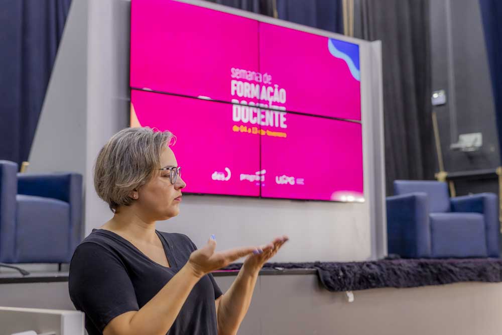 As atividades da Semana de Formação Docente vão até 13 de fevereiro. O evento é organizado pela Prograd, em parceria com o Programa Docência no Ensino Superior (DES) e a Rede Estadual Docência no Ensino Superior (Redes) e conta com palestras e oficinas para aprimorar o conhecimento e a prática dos docentes universitários. Na abertura, a neuropediatra e professora Laís Regina Rocha de Carvalho, a professora Nelba Maria Teixeira Pisacco e o psicólogo William de Oliveira Rosa debateram os desafios da inclusão de pessoas com deficiência no ambiente universitário.