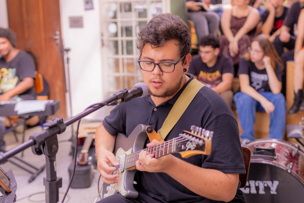 O aluno também relembra o receio que sentia ao subir ao palco quando era calouro e como a vivência no curso contribuiu para diminuir a timidez. “O curso me abraçou de um jeito que eu pensei: ‘eu tô em casa e me sinto bem aqui’, então a vergonha foi saindo aos poucos. Já era menor no segundo ano, no terceiro era quase escassa e no quarto eu tô sem vergonha”. Os quatro anos de graduação também contribuíram para aumentar o repertório. “A gente está exposto a vários estilos e instrumentos, se depara com coisas novas e a curiosidade vem, porque a gente tá no meio acadêmico, então o conhecimento nunca é demais. Assim, a gente vai se formando música.”