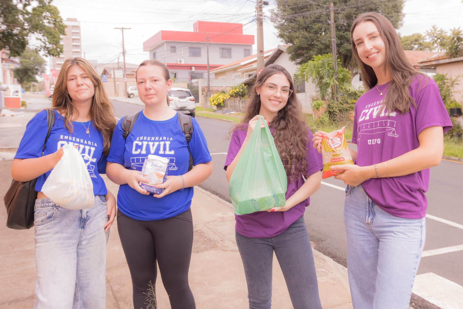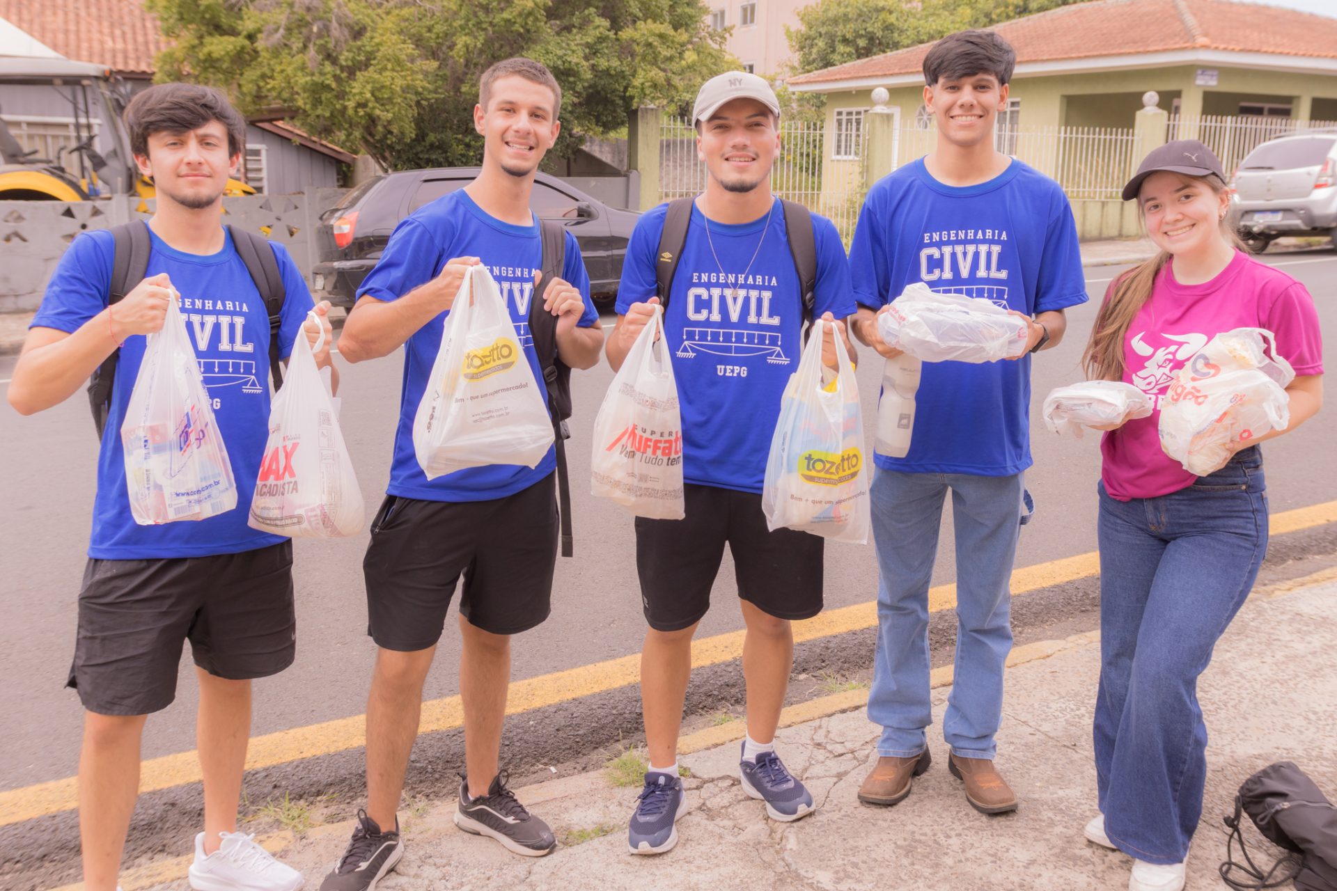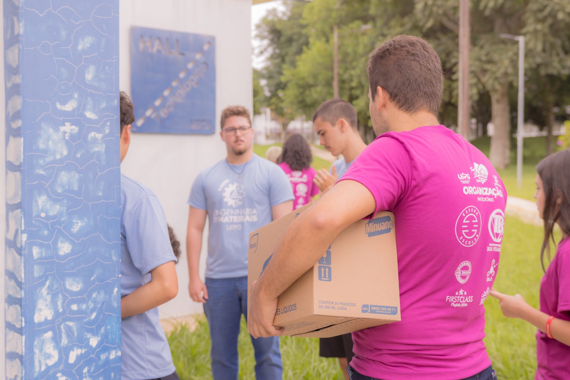 A semana de acolhida aos calouros da Universidade Estadual de Ponta Grossa (UEPG) encerrou com a arrecadação de duas toneladas de alimentos não-perecíveis e produtos de higiene no Trote Solidário da Associação Atlética Acadêmica das Engenharias (AAAEE) Los Bravos, em parceria com os centros acadêmicos (CAs). A ação reuniu os oito cursos que integram o Setor de Engenharias, Ciências Agrárias e de Tecnologia (Secate) e mobilizou cerca de 500 estudantes, que percorreram diversos bairros de Ponta Grossa ao longo de dois dias, batendo de porta em porta em busca de doações.