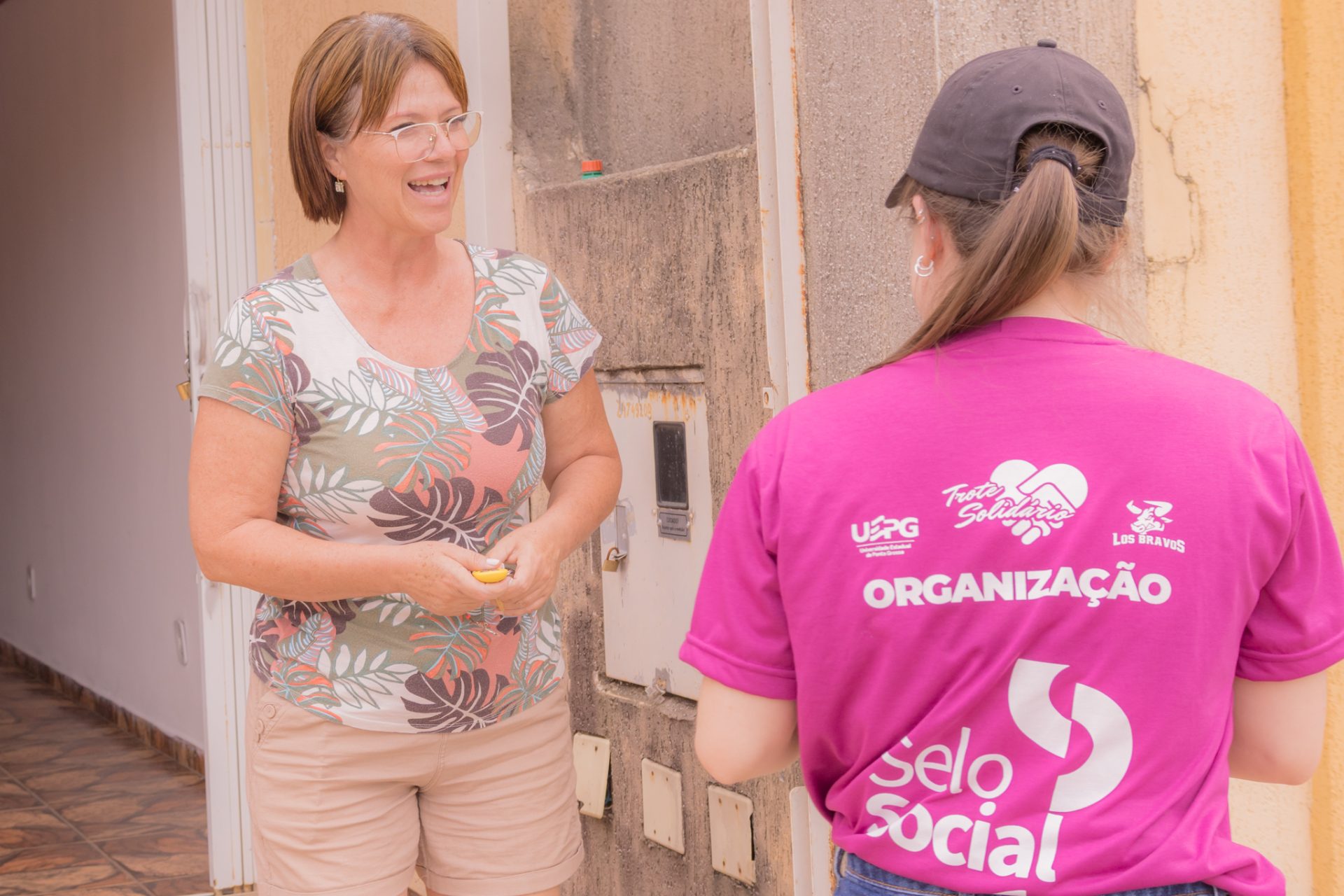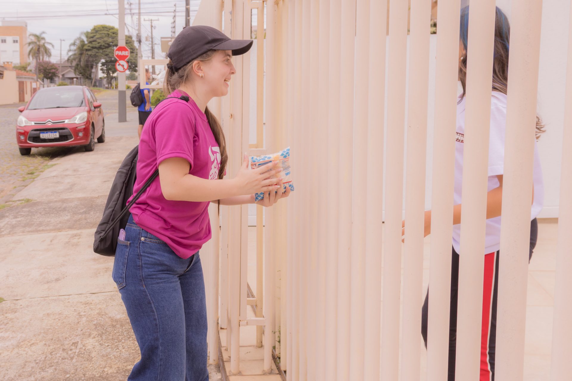 Presidente do Centro Acadêmico de Zootecnia, Maria Rita Noimann acompanhou os calouros durante a coleta nos bairros Ronda e Chapada. Para ela, o trote solidário une acolhimento aos novos alunos com a responsabilidade social da Universidade. “A proposta é fazer com que os calouros se sintam confortáveis e, ao mesmo tempo, contribuir com a comunidade, ajudando pessoas que às vezes não têm condições de comprar alimentos ou materiais de limpeza. Cada curso se reveza nas regiões da cidade para que a gente consiga percorrer Ponta Grossa inteira”, explica. Entre os calouros de Zootecnia estava Manuela Gabriel Choma, que destacou a alegria de participar da ação em seus primeiros dias como universitária. “Ingressar na UEPG é um sonho realizado. Depois de dois anos estudando, estar aqui fazendo o que eu sempre quis é muito gratificante. Participar de um projeto que ajuda o próximo me deixa muito feliz”, afirma.