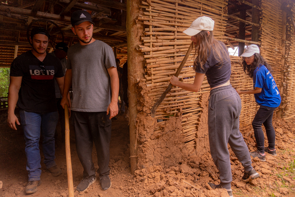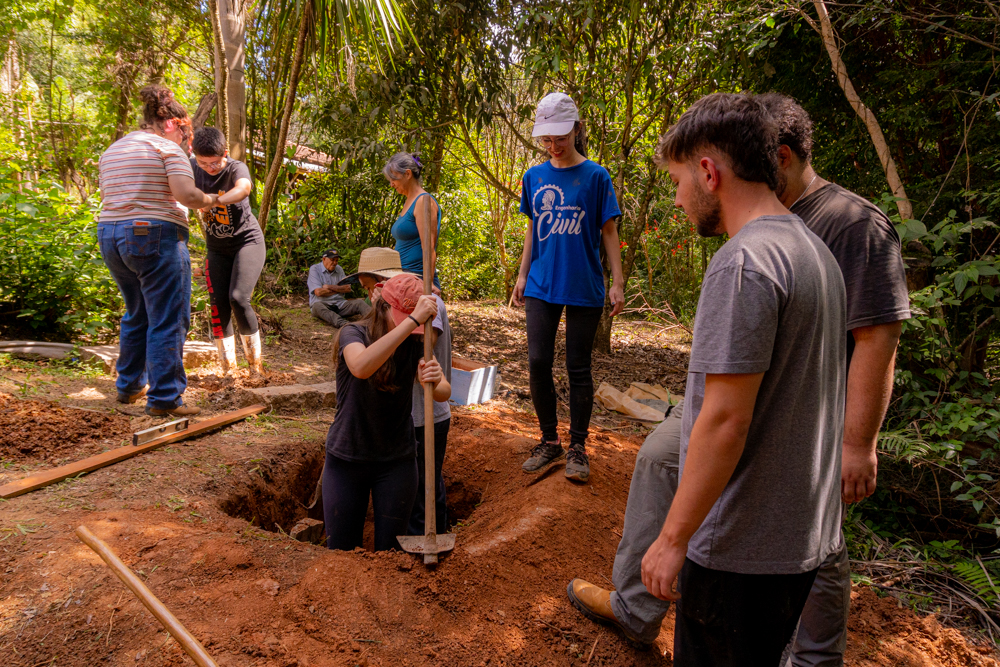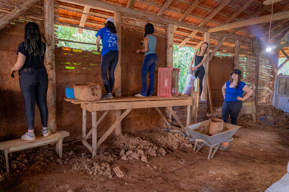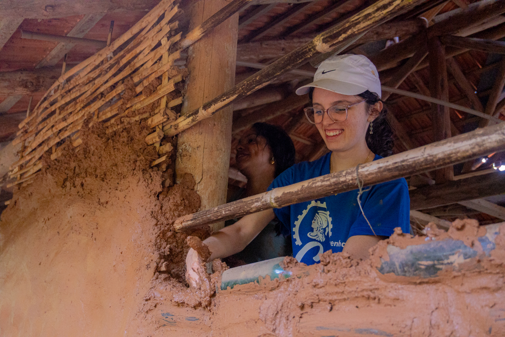 Junto com o mês de fevereiro, a programação da Acolhida Institucional terminou no sábado (28), com uma visita dos calouros de Arquitetura e Urbanismo à Associação de Agricultura Ecológica de Ponta Grossa e Região (Asaeco), localizada no distrito de Itaiacoca, com a participação de mais de 50 alunos. A ação integra um projeto de extensão, vinculado ao Departamento de Engenharia Civil, que oferece apoio técnico e acadêmico para viabilizar construções em taipa. Segundo a coordenadora, professora Nisiane Madalozzo Wambier, o projeto realiza ações de cooperação para atender à demandas da comunidade. “Uma coisa que eles não têm aqui, por exemplo, é uma planta com a identificação de cada construção. Outra coisa que a gente fez hoje é o mutirão para ajudar a construir e montar esse espaço, porque como é uma associação que visa ensino e aprendizado, eles precisam ter espaço para receber as pessoas”, explica.