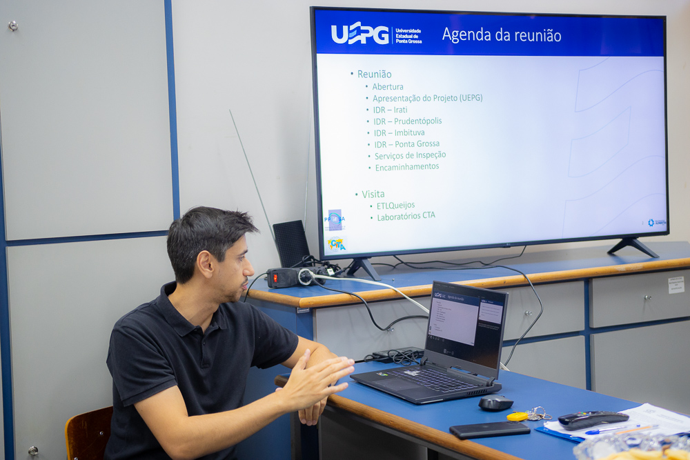 Pequenos produtores de queijo dos Campos Gerais devem passar a contar com uma rede de apoio técnico, orientação e capacitação a partir de uma parceria articulada pela Universidade Estadual de Ponta Grossa (UEPG). O primeiro passo foi dado na quarta-feira (15), em reunião com representantes do Instituto de Desenvolvimento Rural do Paraná (IDR-PR) dos municípios de Irati, Prudentópolis, Ponta Grossa e Imbituva, além de integrantes da Vigilância Sanitária e do Serviço de Inspeção Municipal. O encontro marcou o início da parceria vinculada ao projeto de extensão “Fortalecimento sustentável do setor de lácteos nos Campos Gerais”, que busca ampliar o alcance das ações da Universidade junto a produtores da região. Após a reunião, os participantes visitaram as instalações da Escola Tecnológica de Leite e Queijos (ETLQueijos) e do Programa de Pós-Graduação em Ciência e Tecnologia de Alimentos (PPG-CTA).