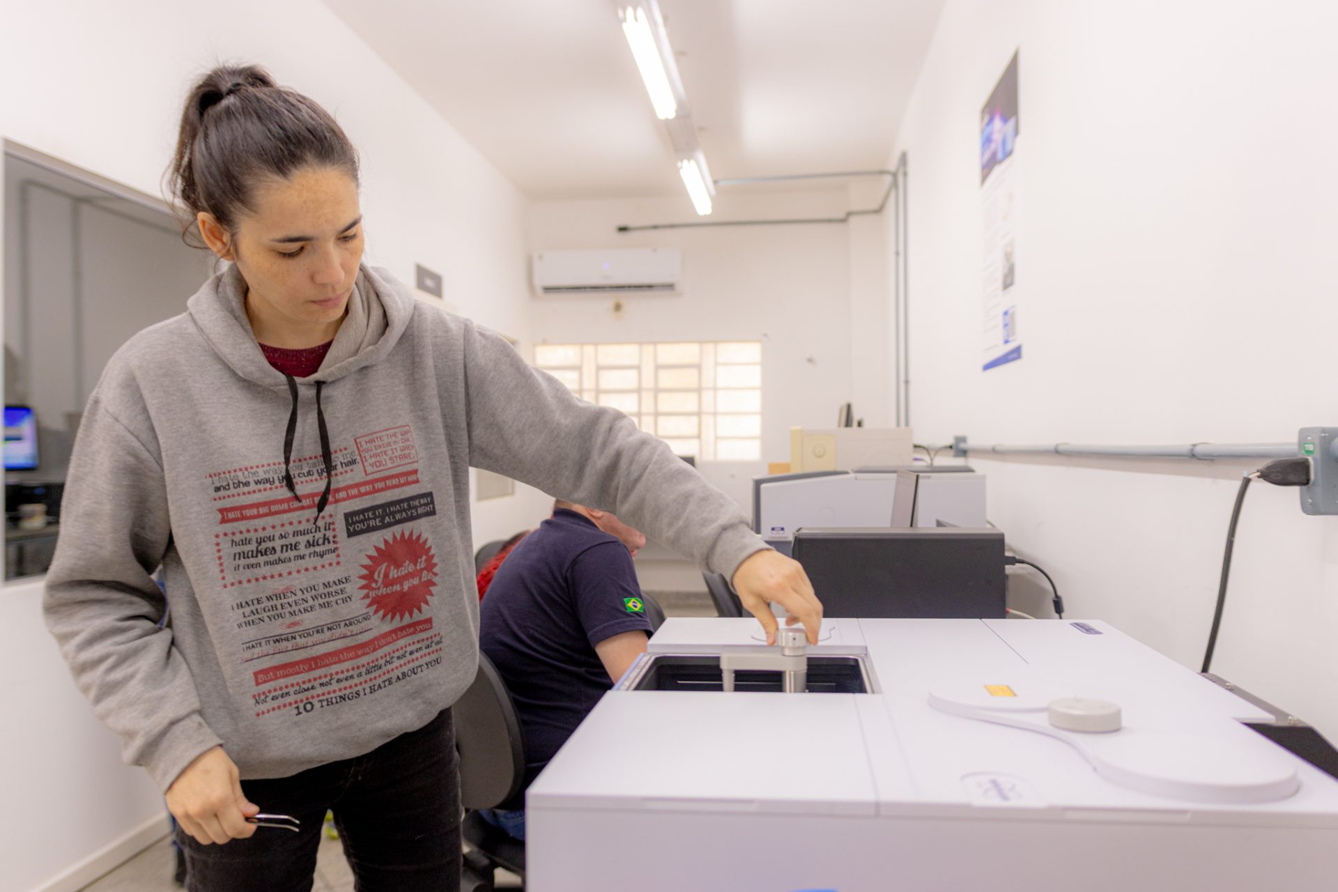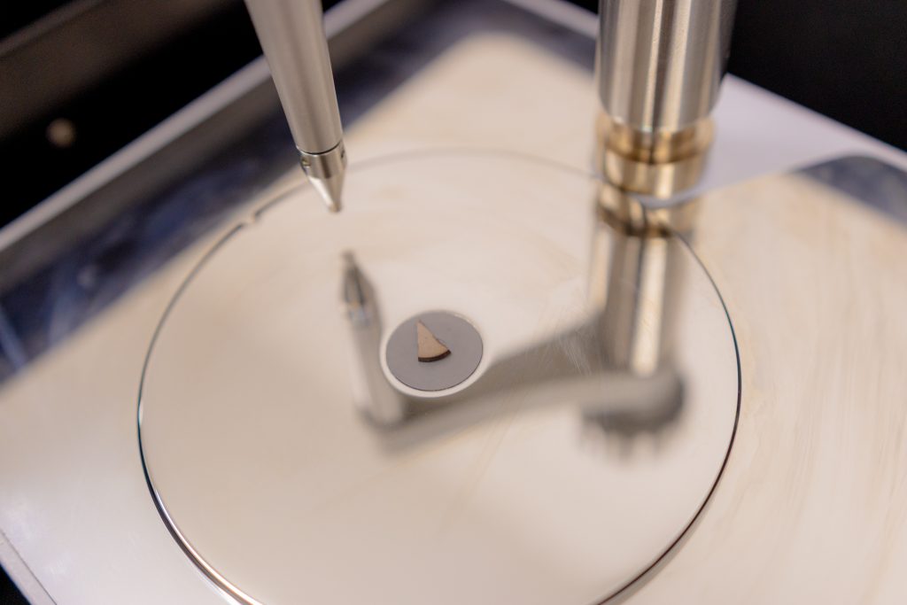 A vinda do equipamento aconteceu por intermédio dos professores Aloisi Somer, Andressa Novatski e Éder de Souza. Uma das vantagens do FTIR, segundo Somer, é que ele pode realizar as medições em pequenos pontos dos materiais, sem necessidade de preparo com pastilhas – como era realizado anteriormente -, diminuindo o tempo e gasto com preparação das amostras. “Ele vem equipado com o modo transmitância [medição da quantidade de luz que atravessa uma substância e sai pelo outro lado], mas com a vantagem que opera a vácuo. Assim, não ocorrem os problemas com bandas de absorção da água, por exemplo, apresentando o espectro da amostra”, explica.