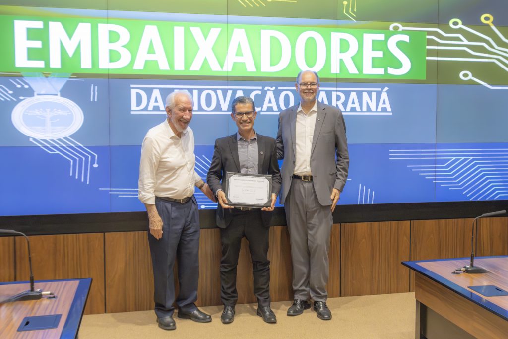 “Esse é o grande momento do ano da Secretaria. Pela primeira vez pedimos sugestão a todo ecossistema de inovação do Estado para nos dizer quem seria interessante ser homenageado”, destaca o secretário da Seia, Alex Canziani. Ele explica que o título de embaixador é para aquela pessoa que desenvolve, faz o trabalho, que consegue construir pela sua articulação a inovação na região onde atua e no Estado como um todo. “A UEPG é uma grande parceira da inovação no Paraná e faz um grande trabalho. Nós temos acompanhado o trabalho e o nome do professor Ivo surgiu nesse contexto, pelo trabalho relevante que desempenha na Universidade, na cidade e na região. Para nós, é um grande honra poder homenagear o professor Ivo e também a própria UEPG pelo belo trabalho que realiza em prol da ciência, tecnologia e inovação no Paraná”, finaliza Canziani.